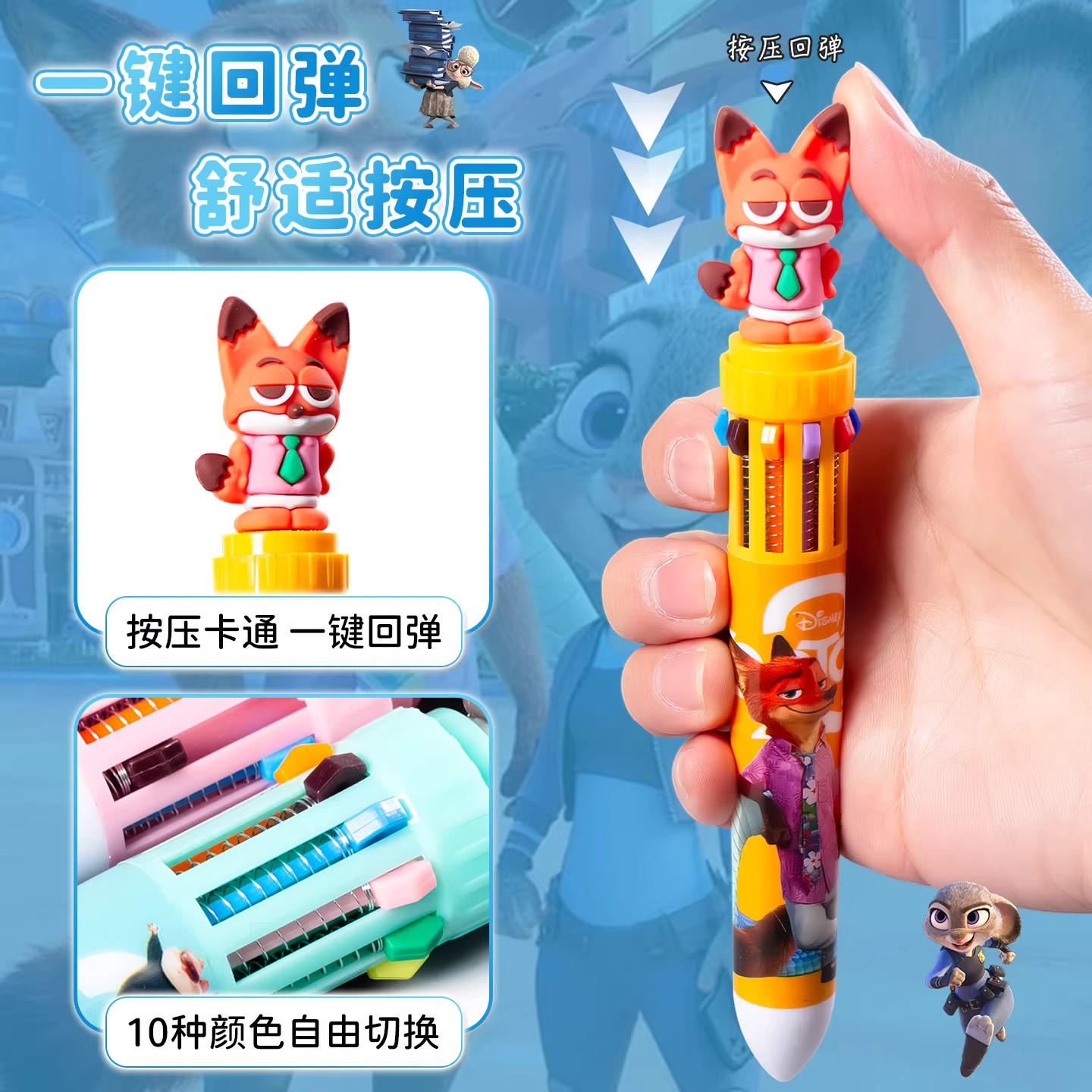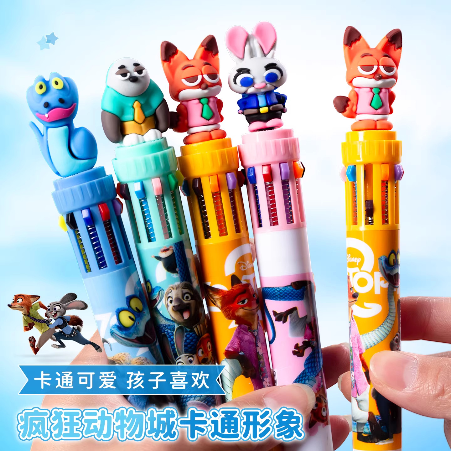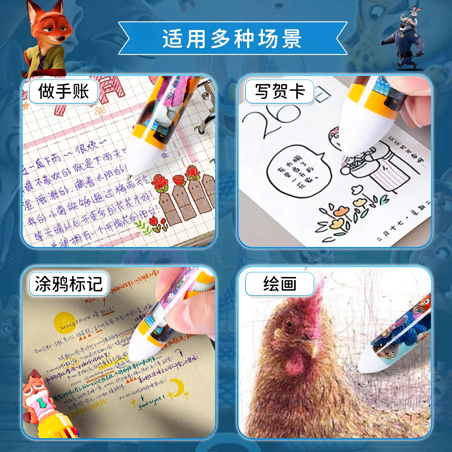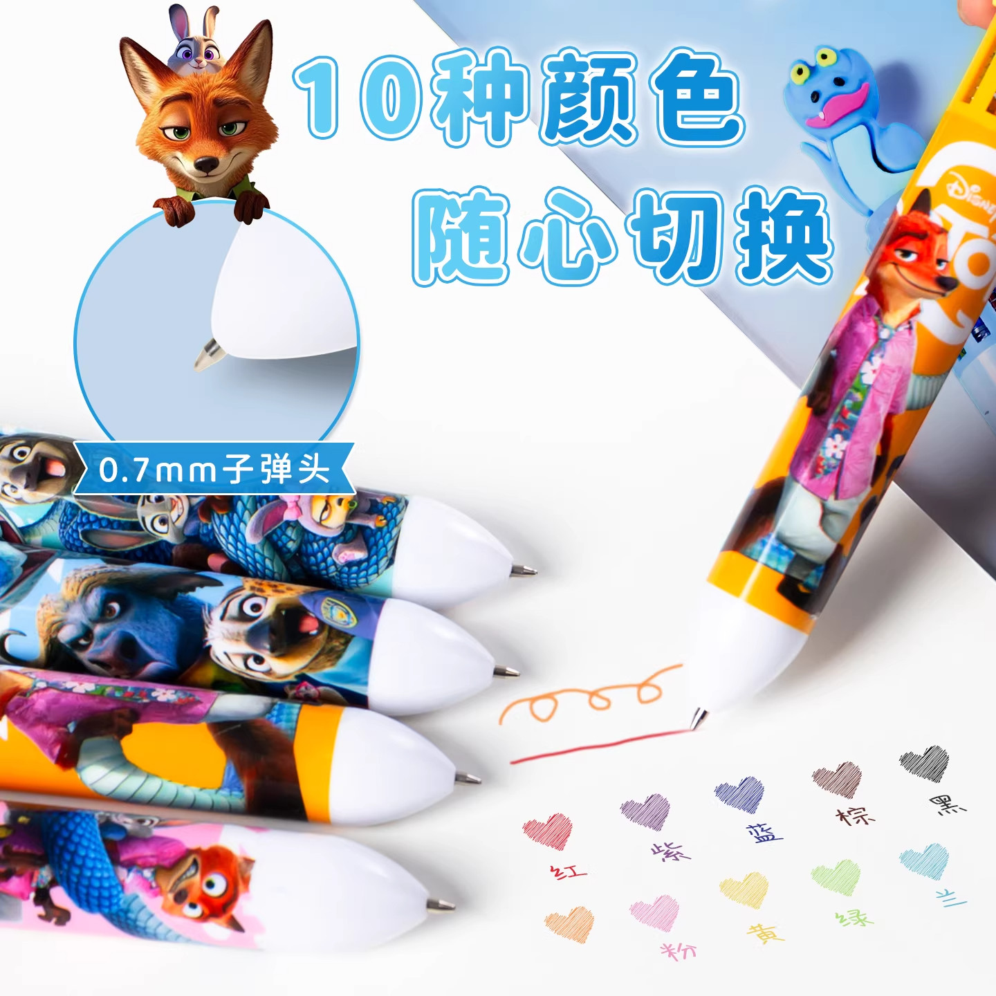 📚 疯狂动物城2多色笔圆珠笔10色手账笔划重点标记朱迪尼克七彩油笔