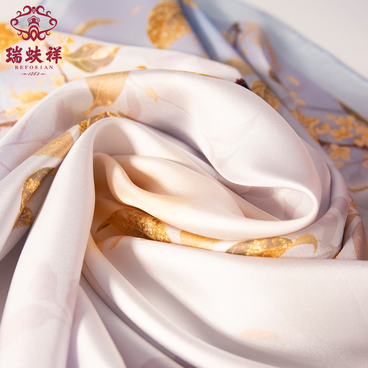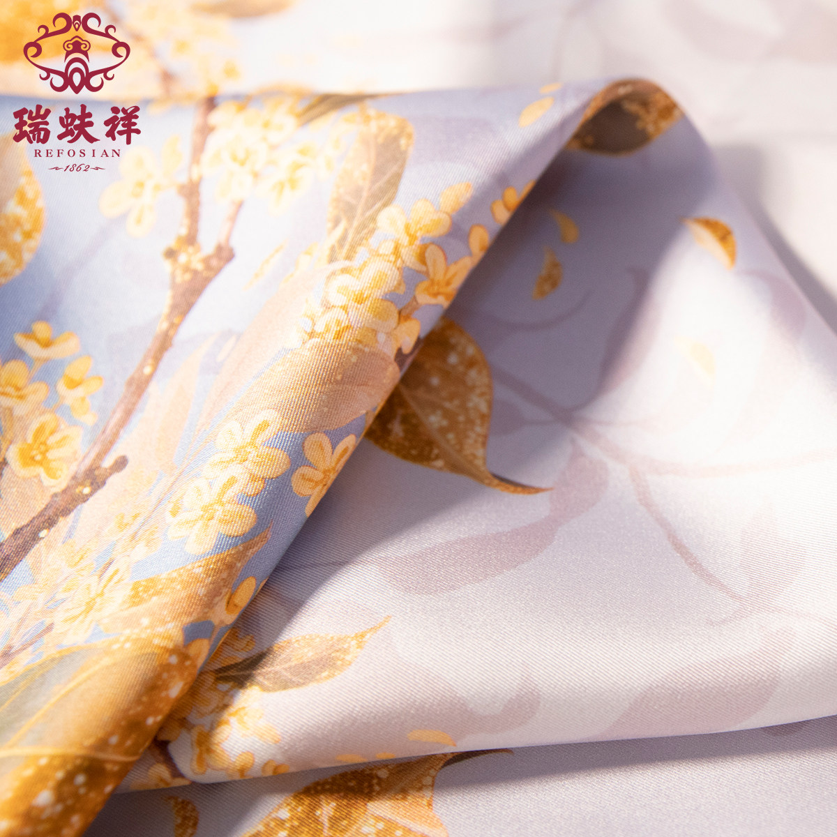 📚 瑞蚨祥原创丝巾【丹桂飘香】100%桑蚕丝双面印花真丝方巾送礼礼盒