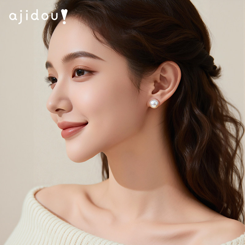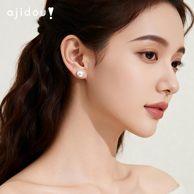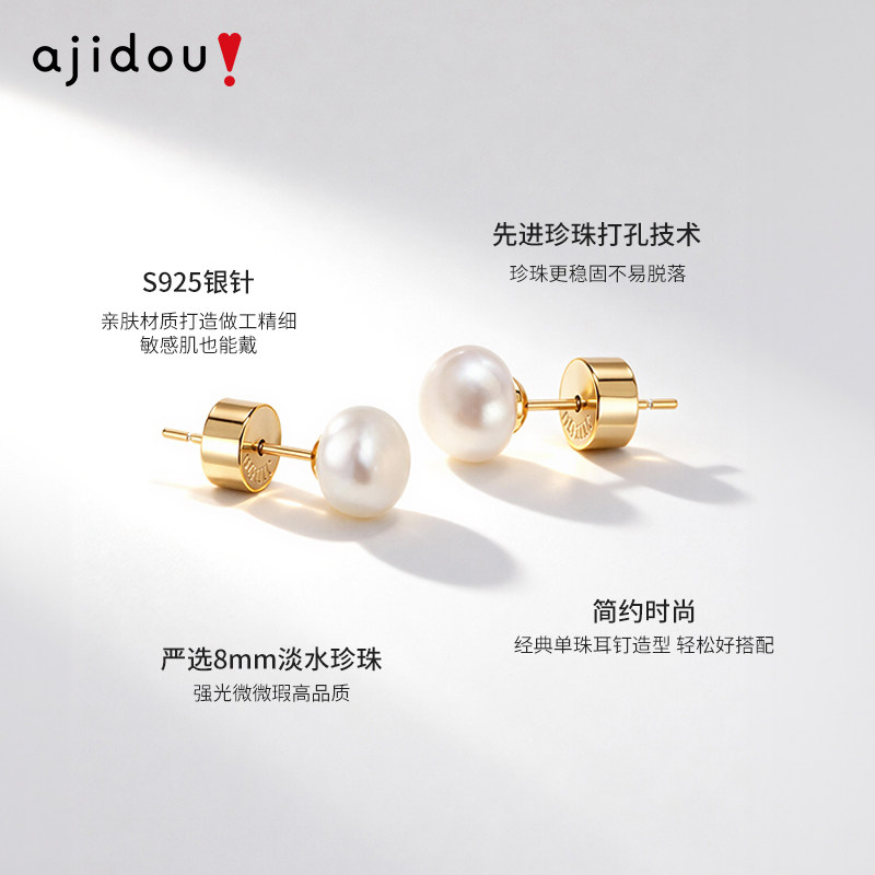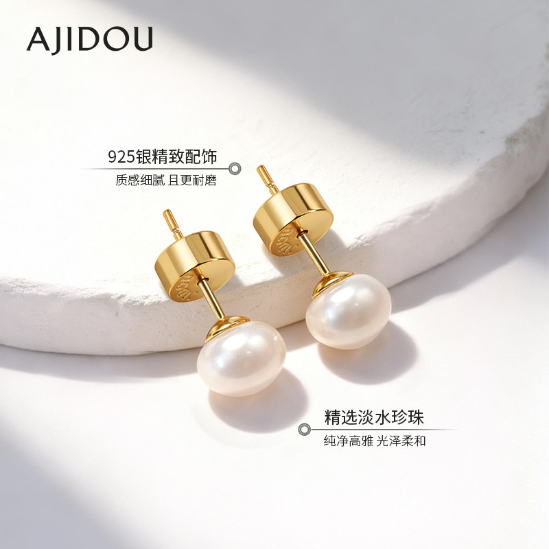 📚 AJIDOU阿吉豆耳钉女款S925银天然珍珠耳环轻奢耳饰爆款珍珠配饰品