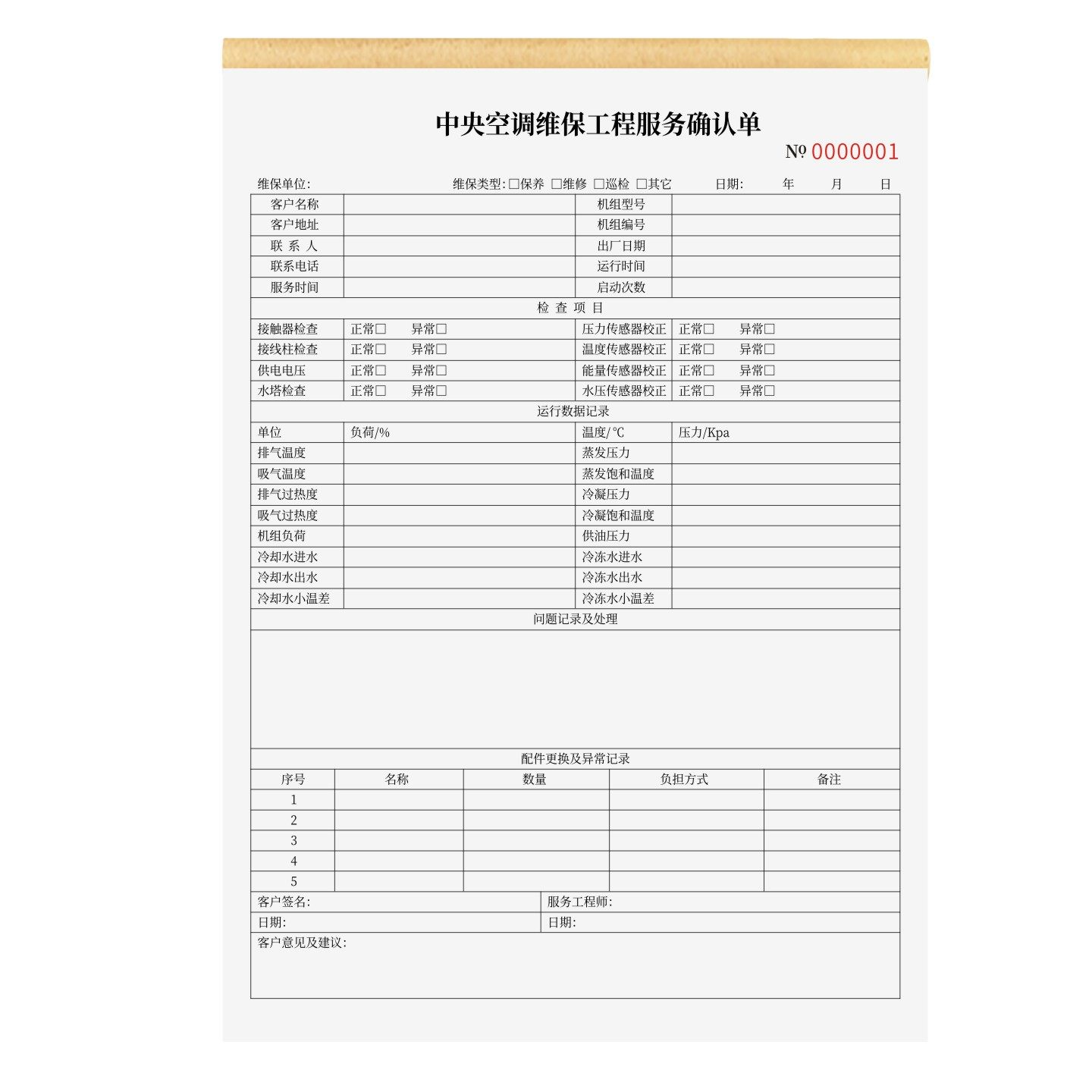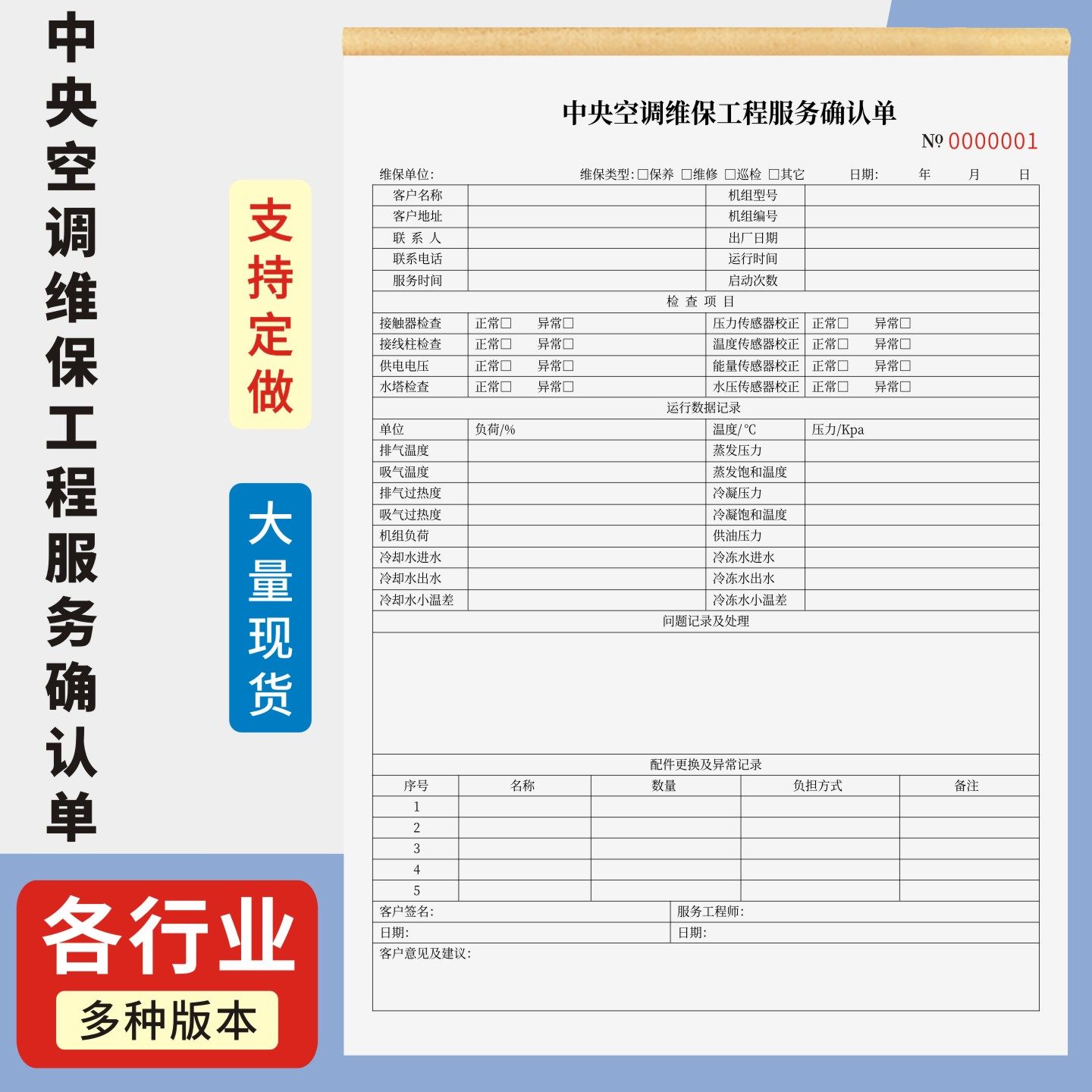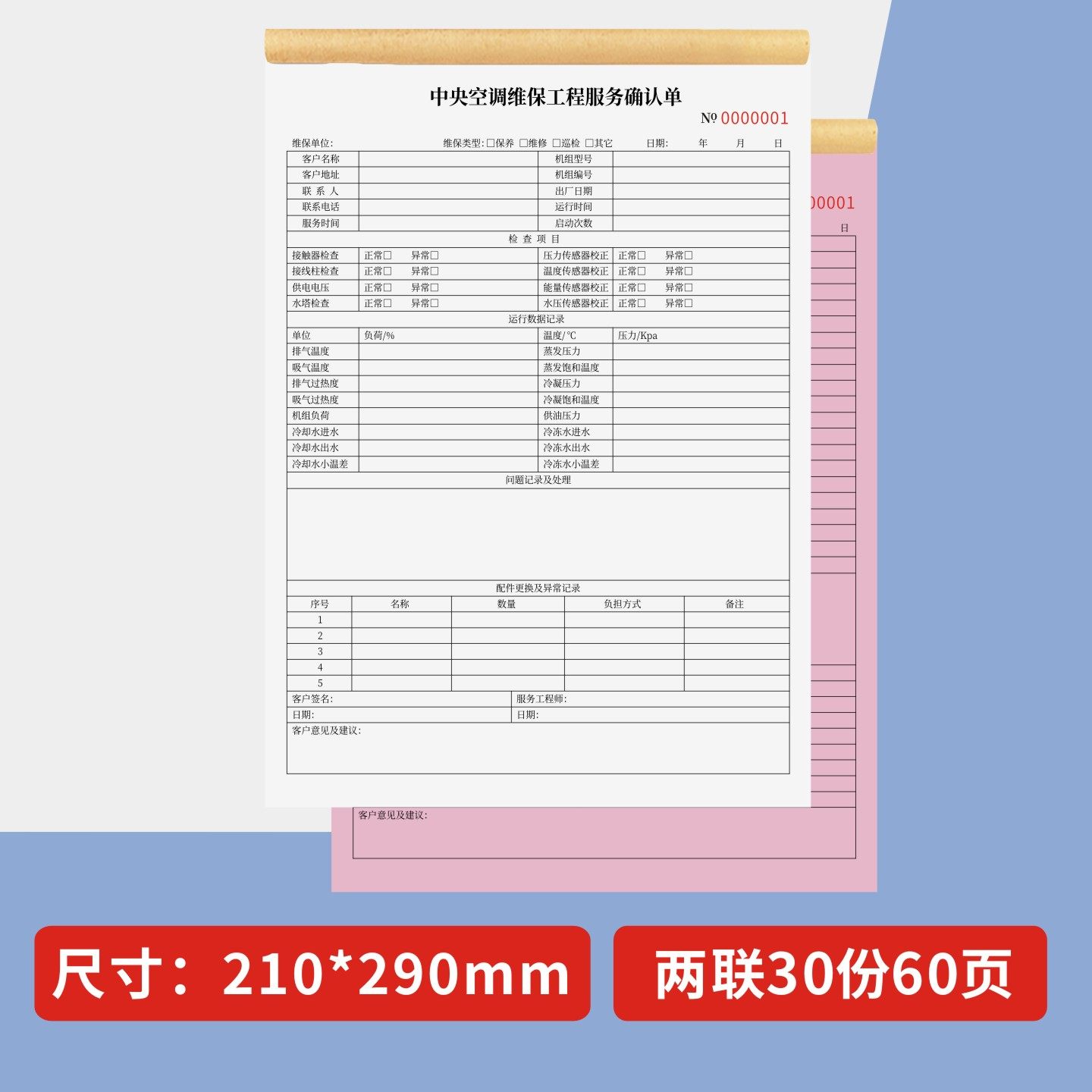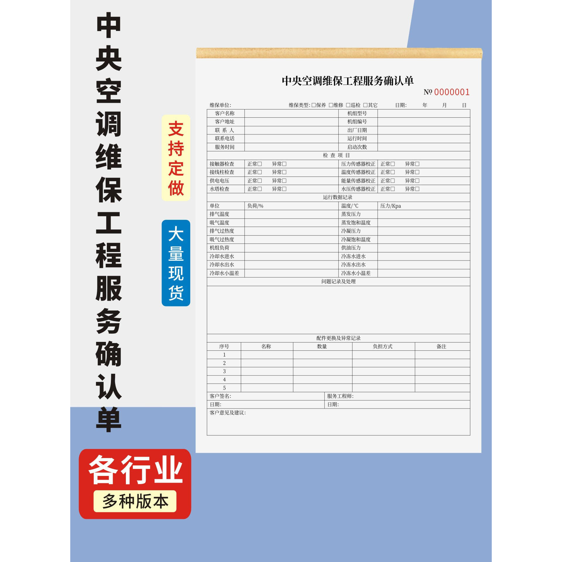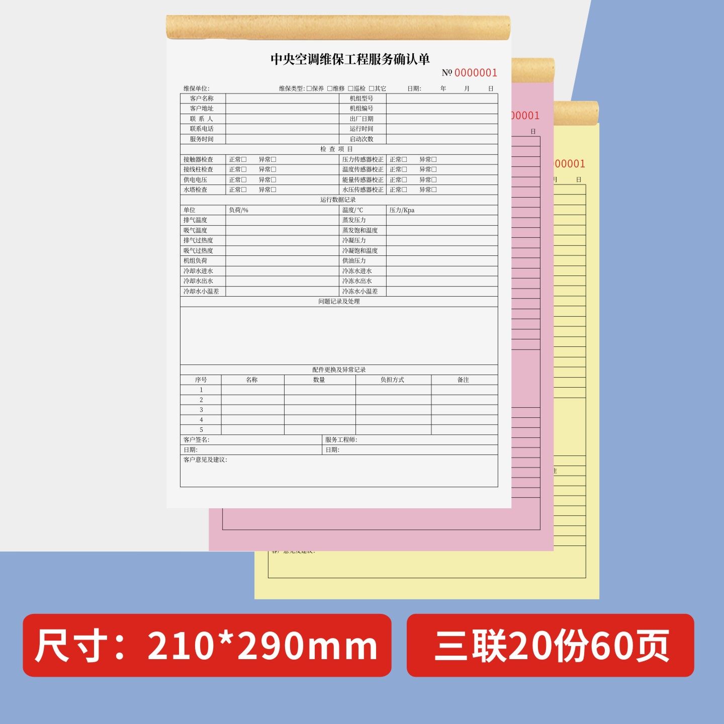 📚 中央空调维保工程服务确认单定制订做两联三联无碳复写通用版家电维修保养单上门安装维修记录本空调维修保养