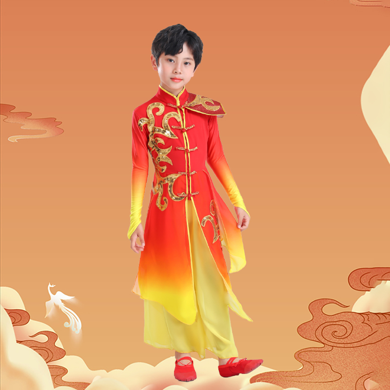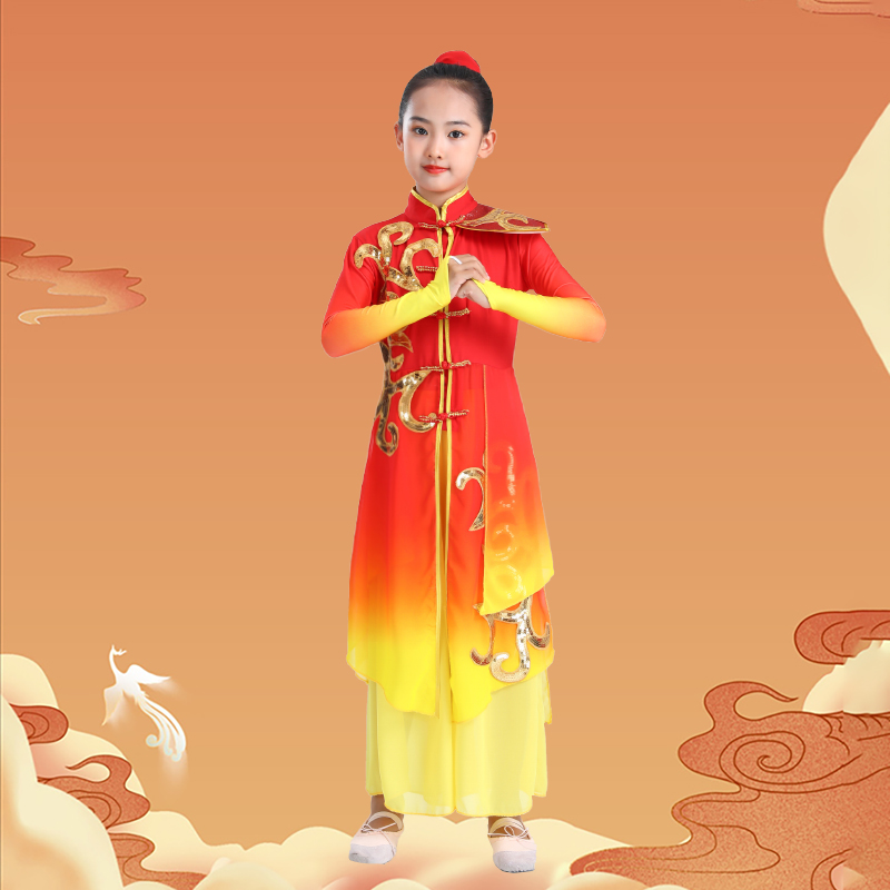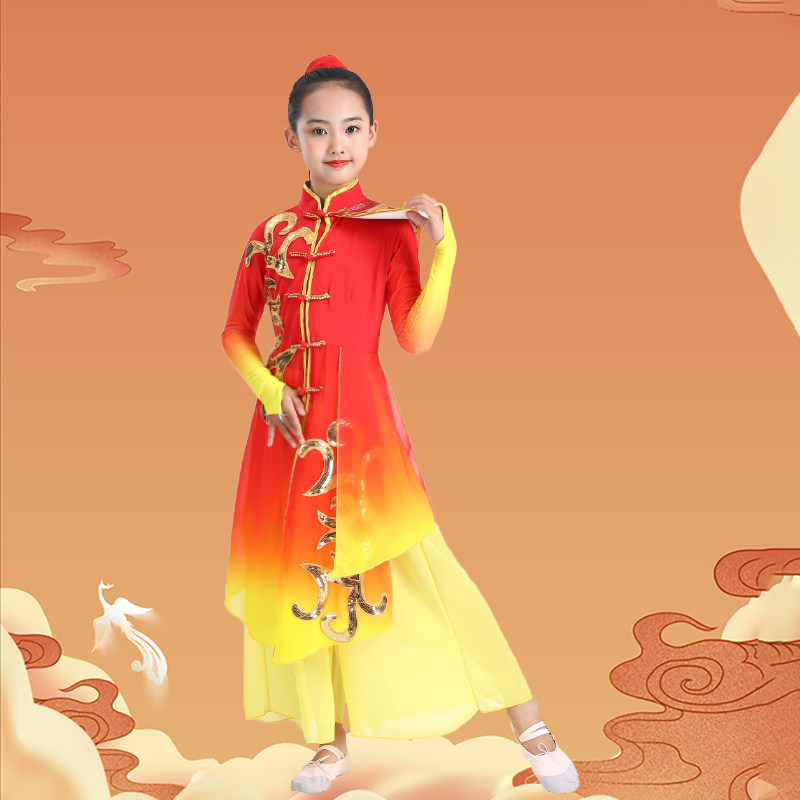 📚 中国风演出服女儿童打鼓服少年志舞蹈服装扇子舞书简舞腰鼓舞服装