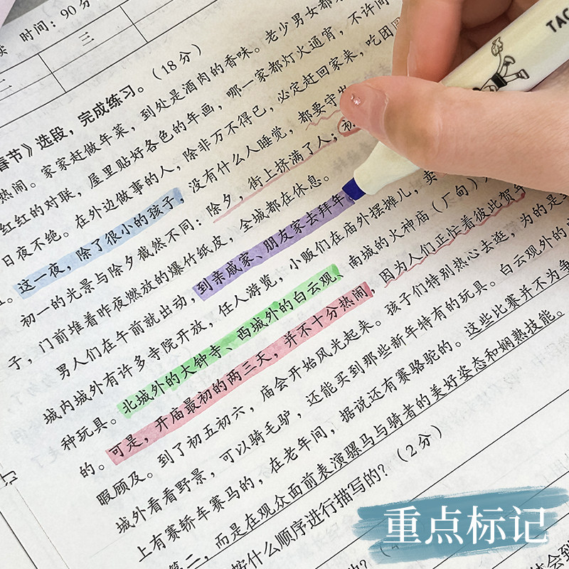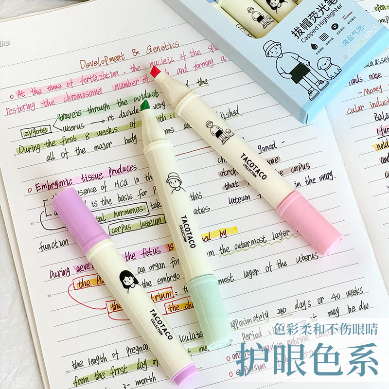 📚 TacoTaco荧光笔高颜值学生用大容量彩色标记笔护眼淡色系复古莫兰迪色系做笔记手账画重点多色记号笔彩笔文具