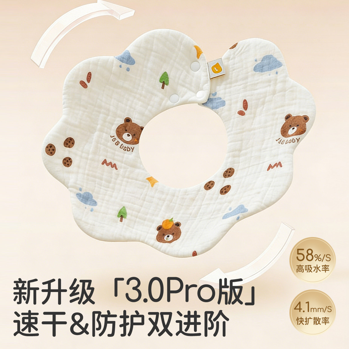 📚 婧麒婴儿围嘴纯棉a类新生宝宝口水巾防水纱布围脖围兜婴幼儿男女