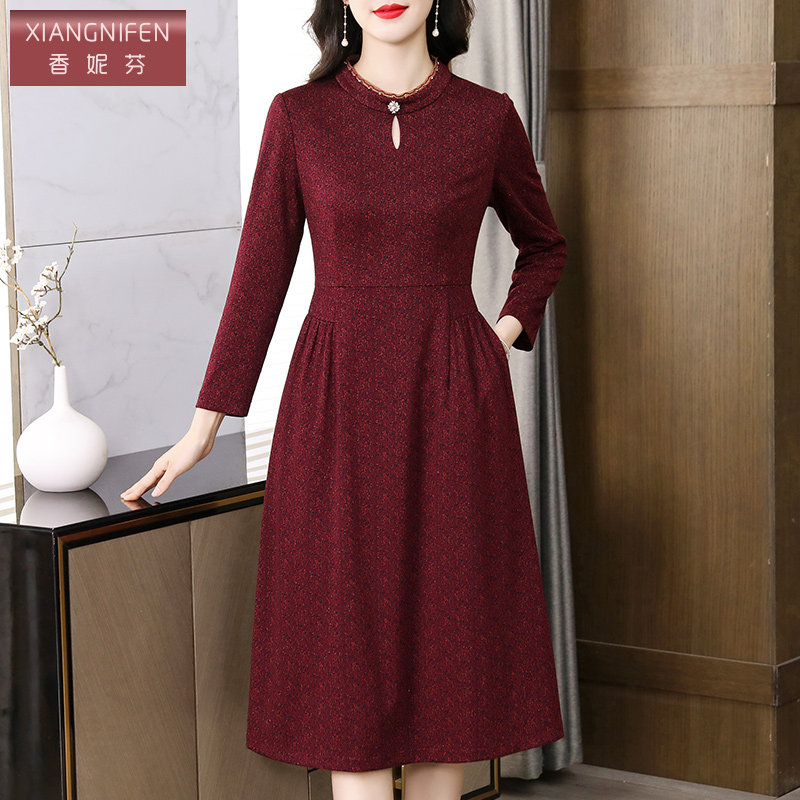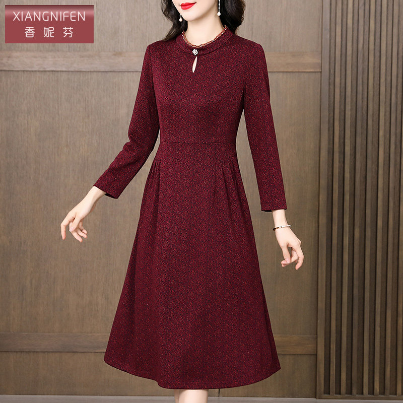 📚 香妮芬高端红色洋气减龄连衣裙女2025新款秋季超好看漂亮长袖裙子