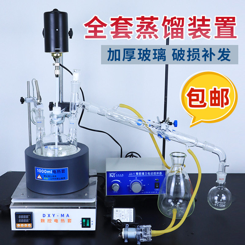 📚 玻璃冷凝蒸馏装置实验室水泵回流萃取提纯冷凝循环装置 1000ml500