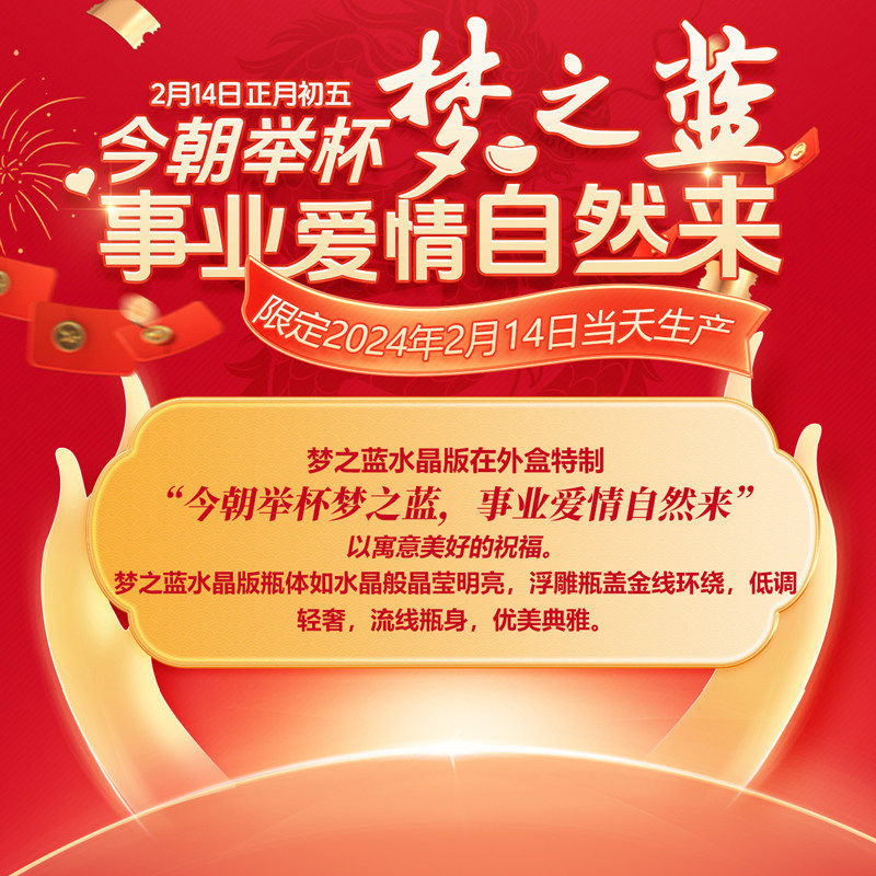 📚 【2.14正月初五纪念款】洋河蓝色经典 梦之蓝水晶版 52度550mL