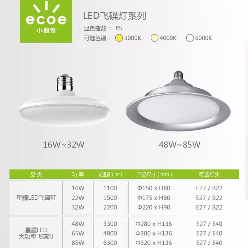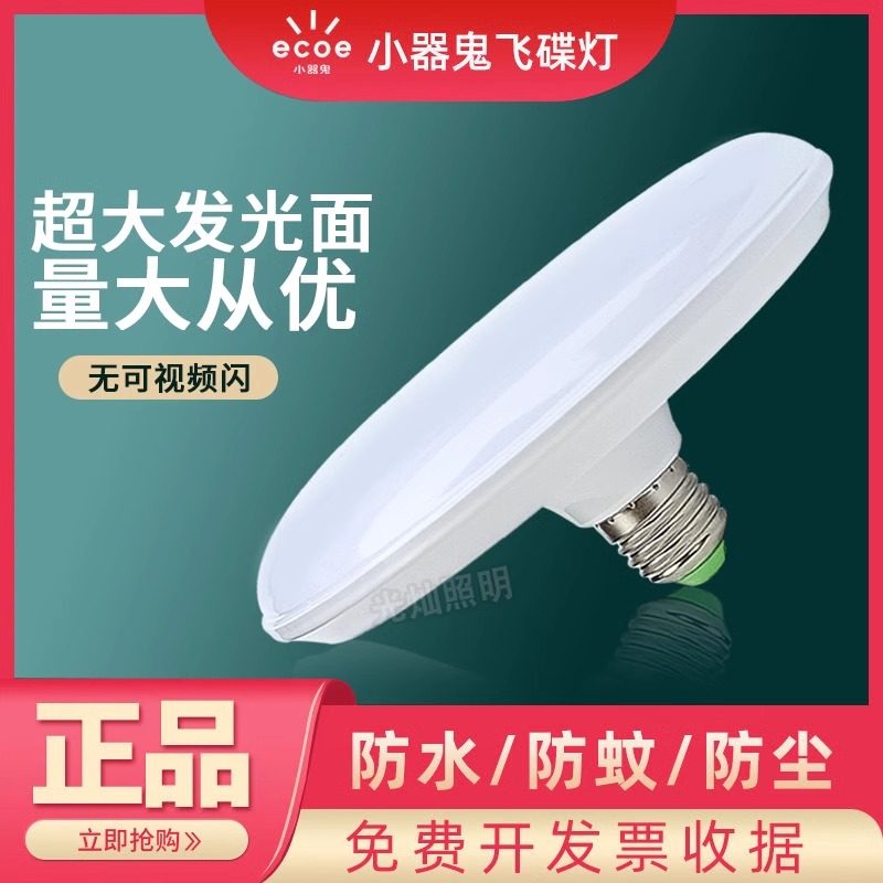 📚 正品小器鬼LED飞碟灯大功率灯泡E27螺口小气鬼节能吸顶灯厂房车间