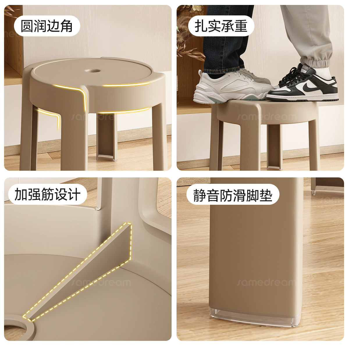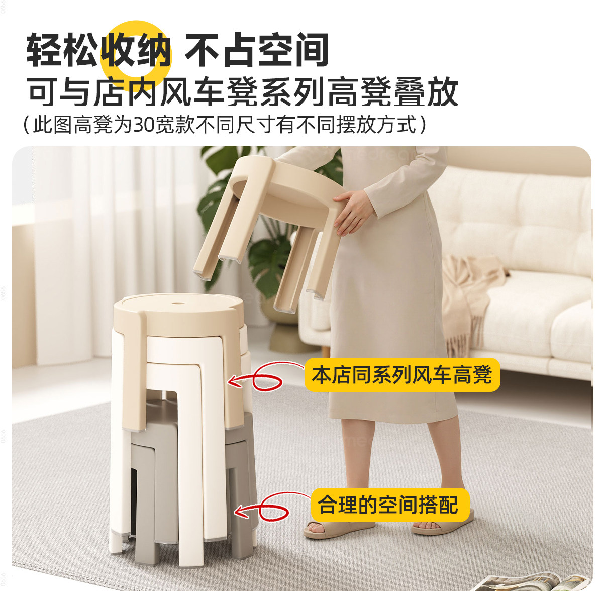 📚 塑料小凳子家用可叠放加厚矮凳结实耐用高级板凳客厅餐桌备用圆凳