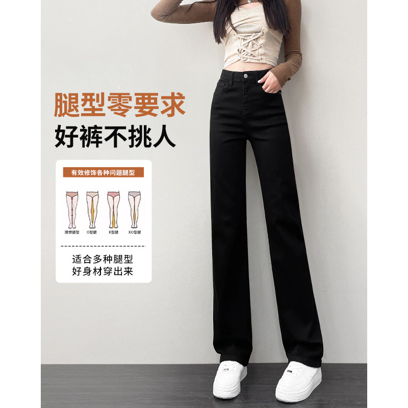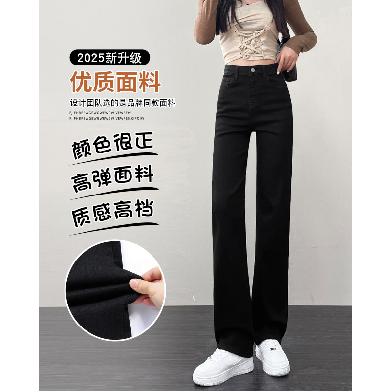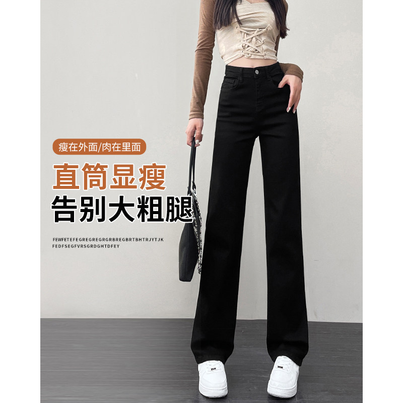 📚 窄版直筒牛仔裤女2025新款小个子爆款加绒女士阔腿裤秋季黑色裤子