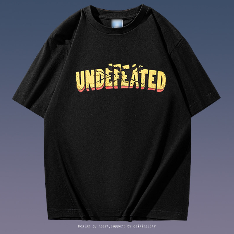 📚 不败五道杠圆领短袖 HIAUTO UND破碎字母印花男女情侣款宽松T恤潮