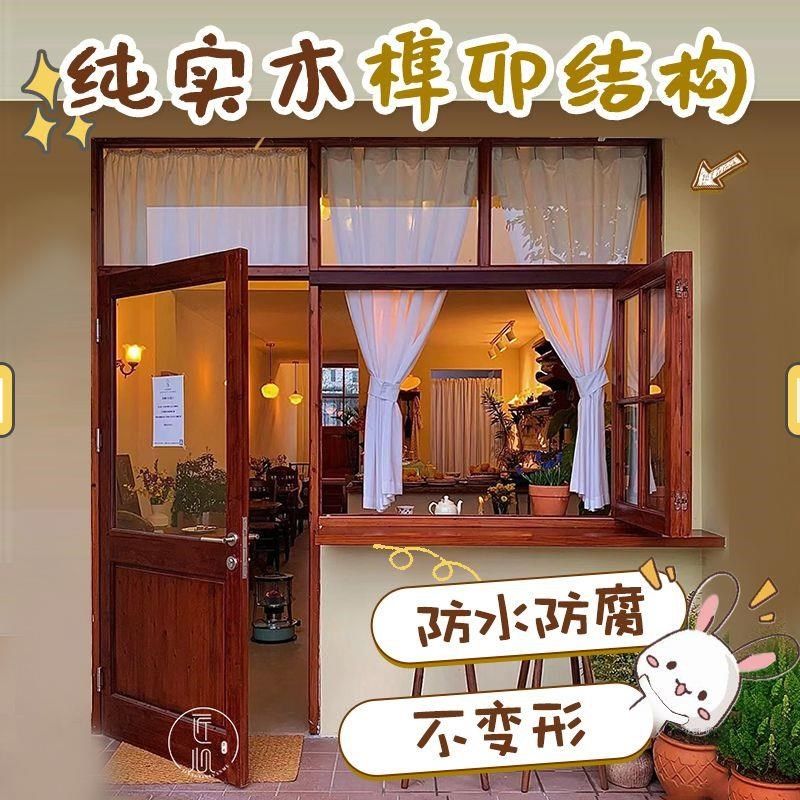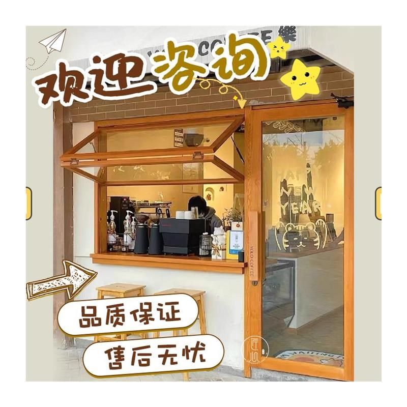 📚 定制店铺民宿商铺咖啡店蛋糕店花店实木玻璃门窗上下折叠推拉窗