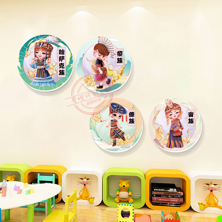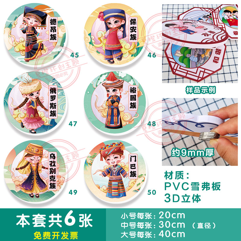 📚 幼儿园56个民族环创挂图 走廊楼道墙面装饰画挂画3d立体墙贴pvc板