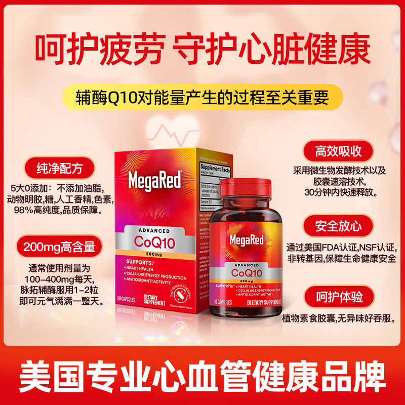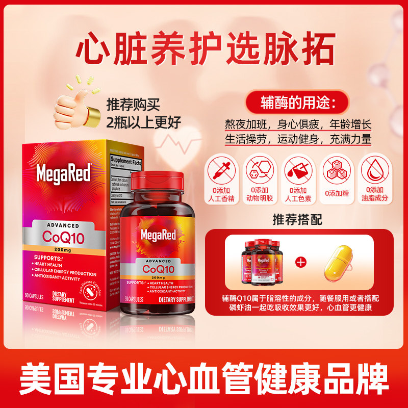 📚 【自营】MegaRed脉拓美国进口高含量辅酶q10软胶囊熬夜护心脏2瓶