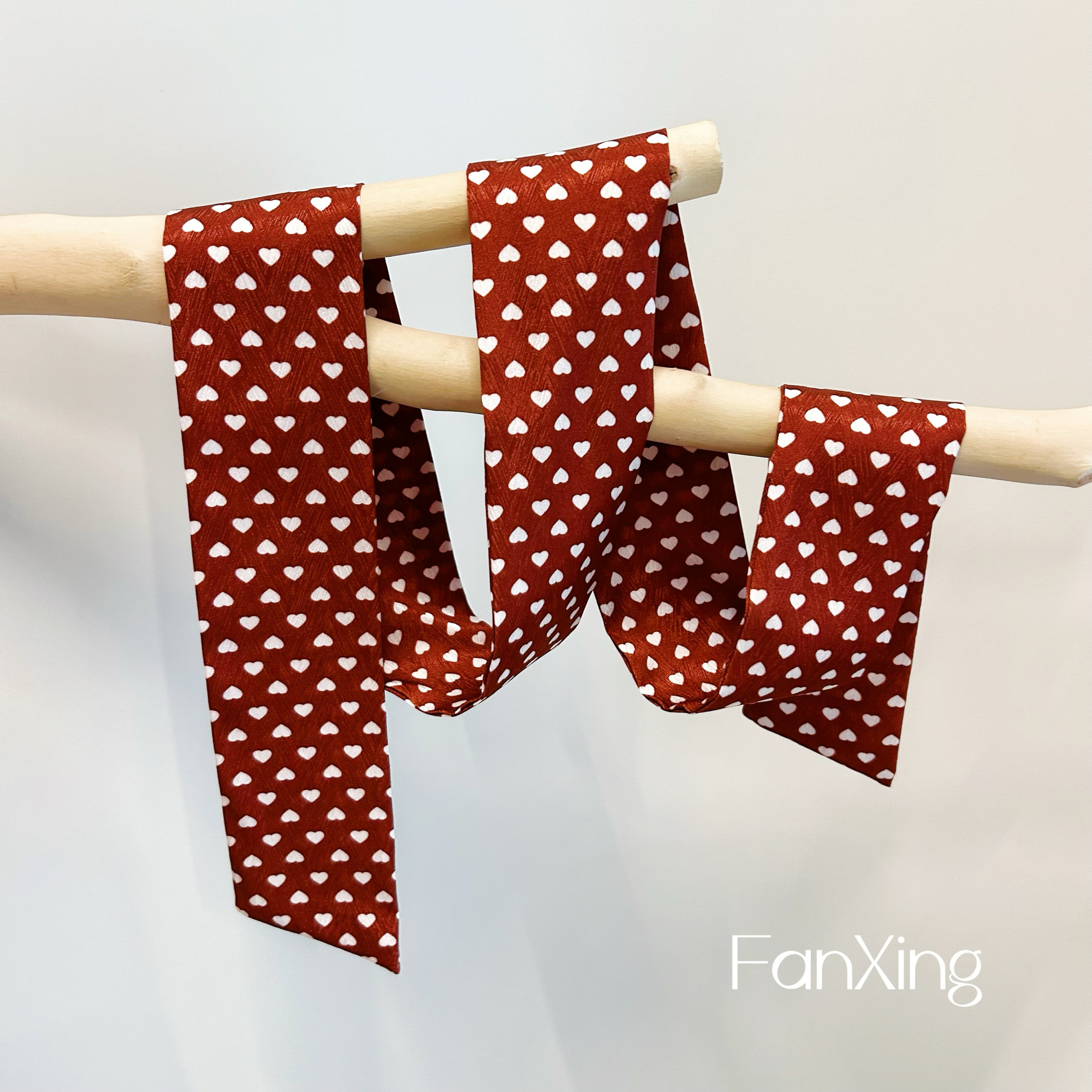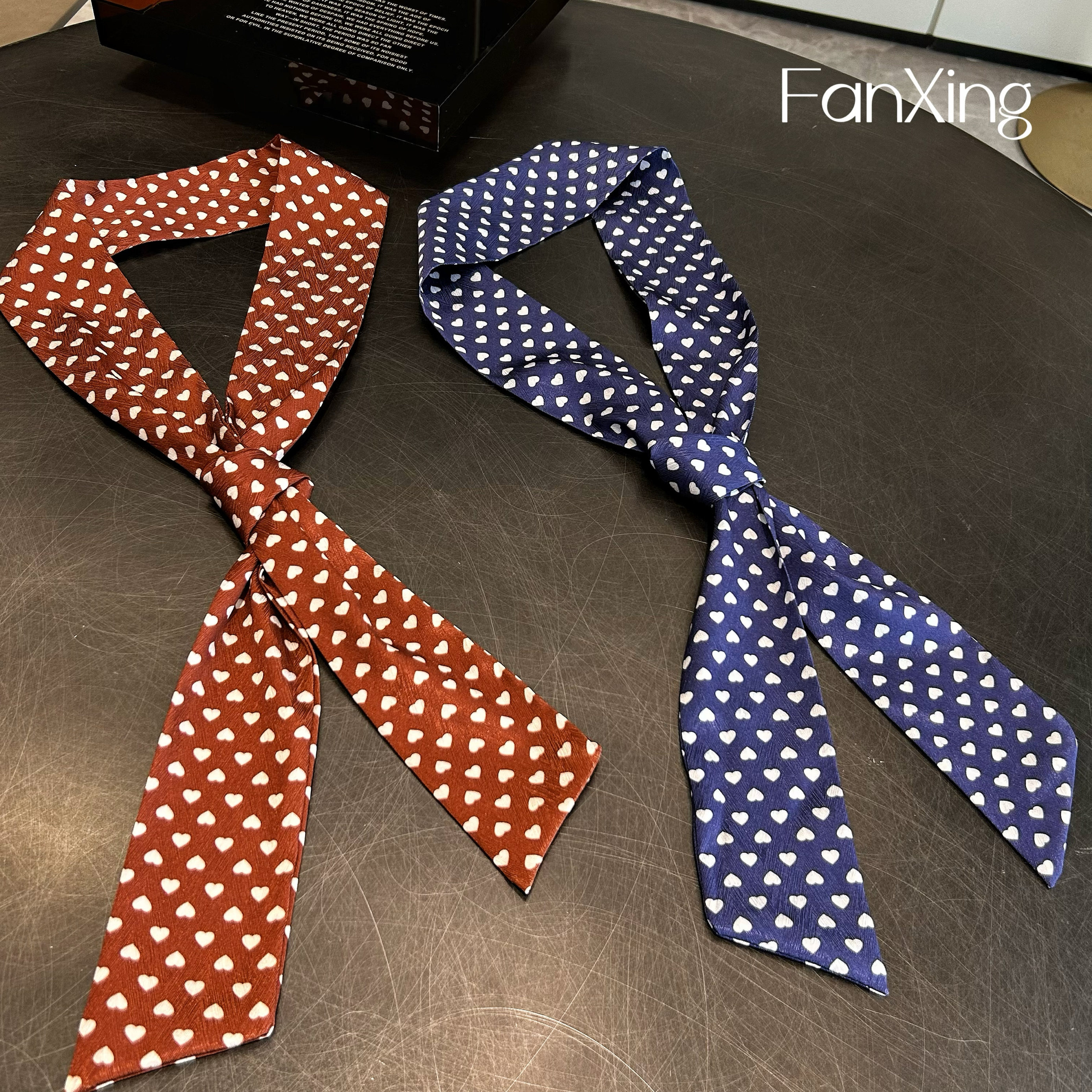 📚 繁星原创红色丝巾领巾发带法式复古蓝色爱心小长条绑包扎发丝带女