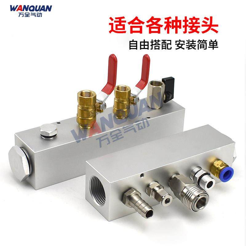 📚 1寸气管分流排水排分流器汇流板底座气动铝条大流量多管路气源分
