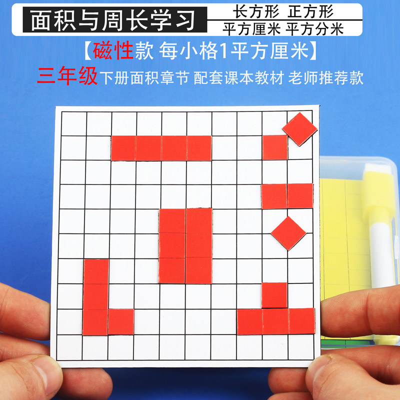📚 塑料正方形磁性片小方片边长1平方厘米cm分米1m平方1米关系方块小学三年级下册学生用面积测量器数学教具学具