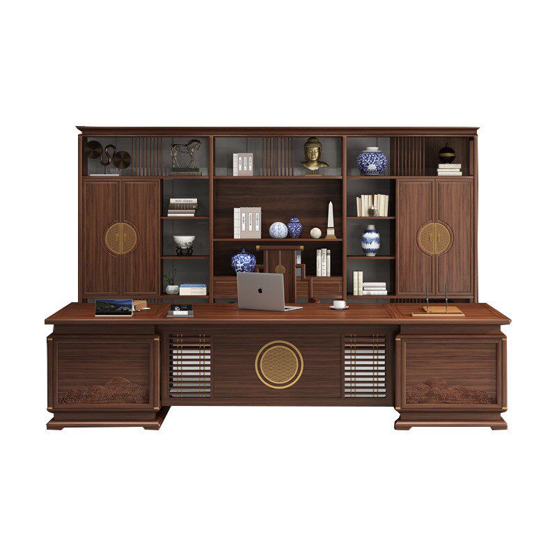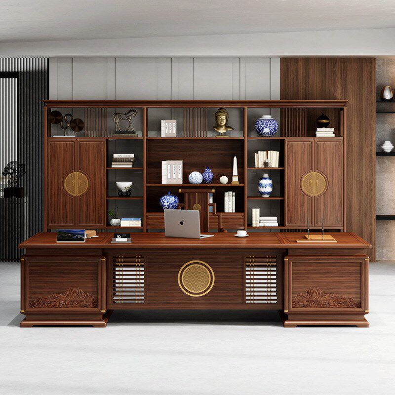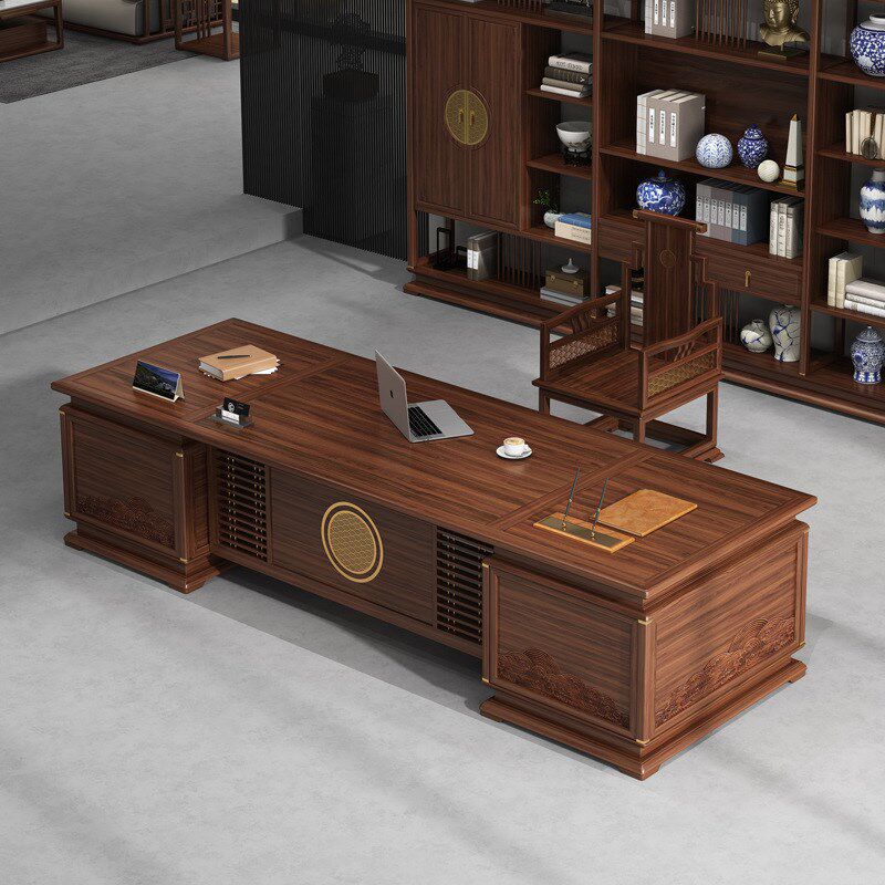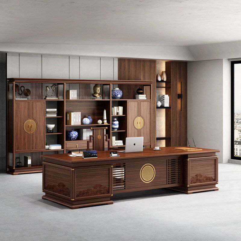 📚 新中式实木大班台时尚大气办公桌经理总裁办公室乌金木老板桌全套