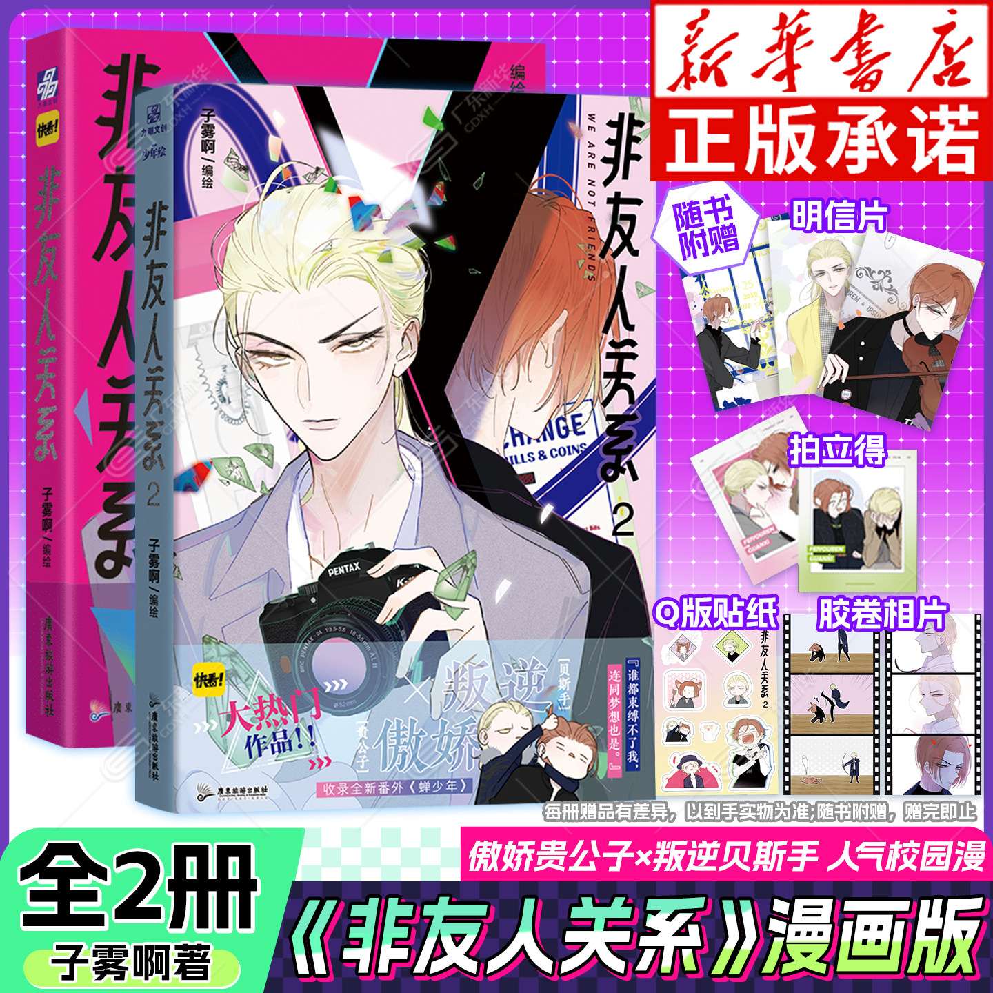 📚 【赠贴纸+明信片+拍立得+胶卷相卡】非友人关系1+2套装 漫画 傲娇贵公子×叛逆贝斯手 子雾啊倾力新作快看漫画APP热门校园都市漫画