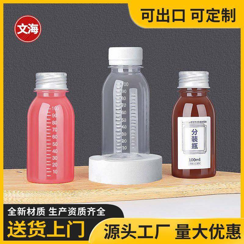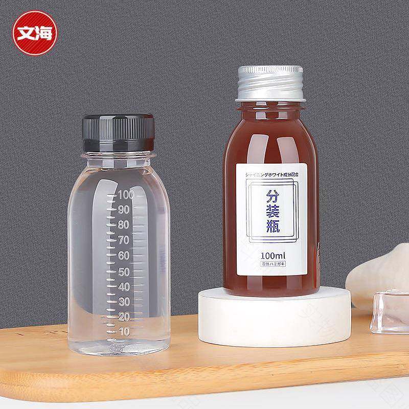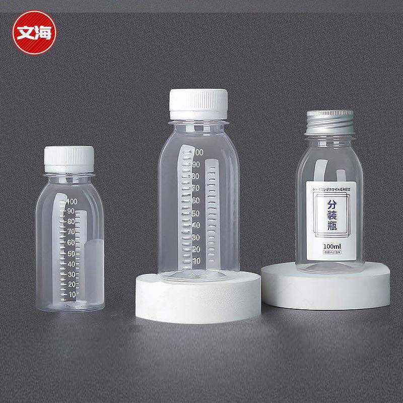 📚 100ml分装瓶塑料透明带盖空pet一次性刻度液体试剂药水样品小瓶子