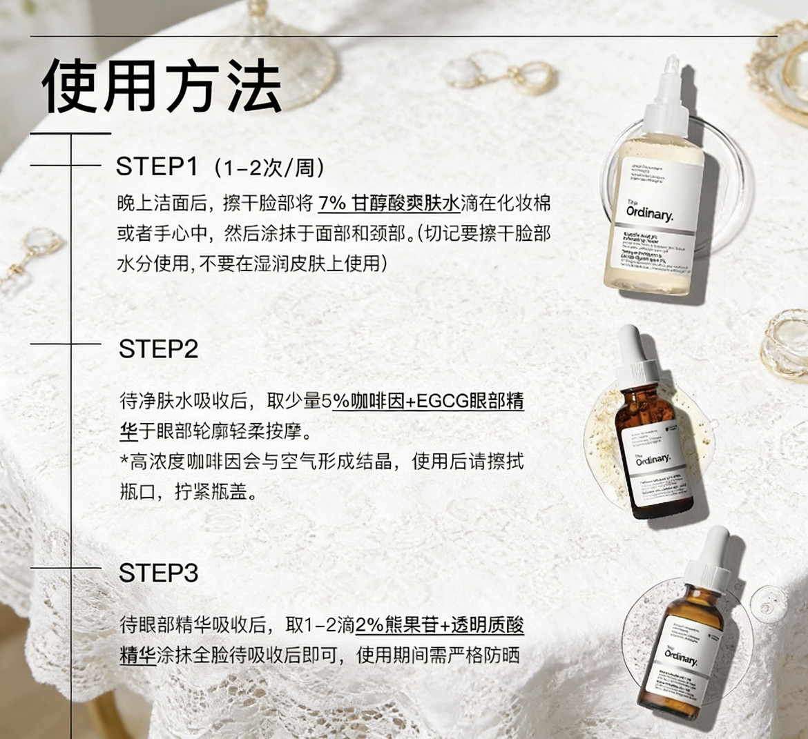 📚 【刷酸入门】The Ordinary焕白套装果酸水+咖啡因精华+熊果苷精华