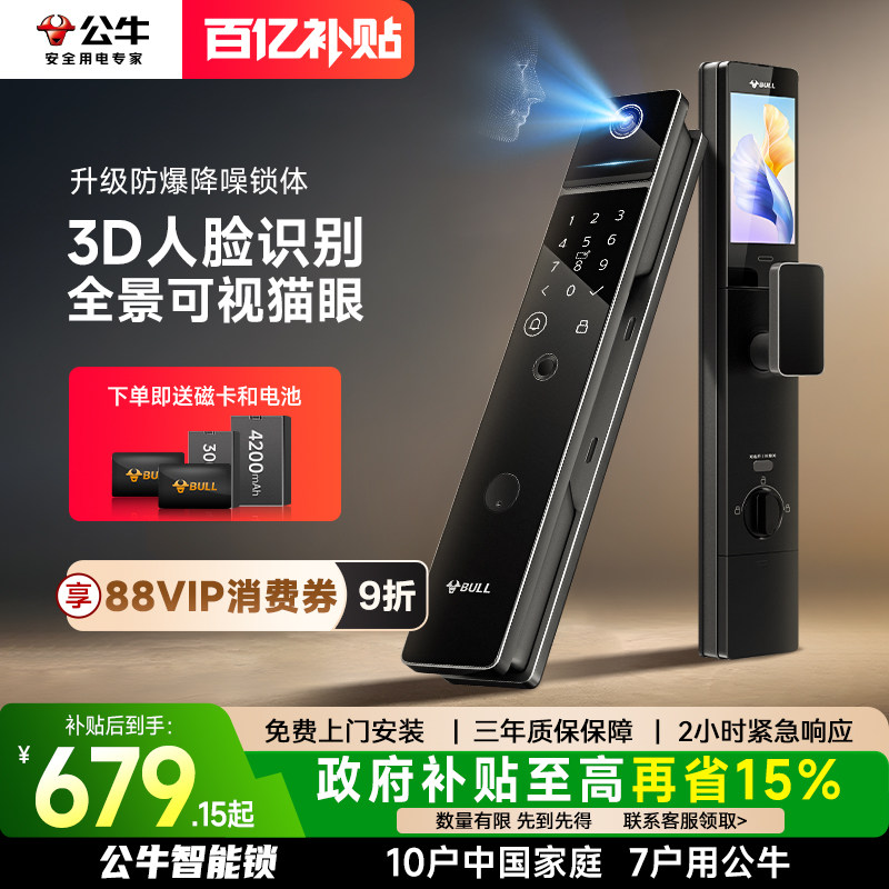 📚 公牛智能门锁全自动指纹锁家用防盗门人脸识别智能锁密码锁电子锁