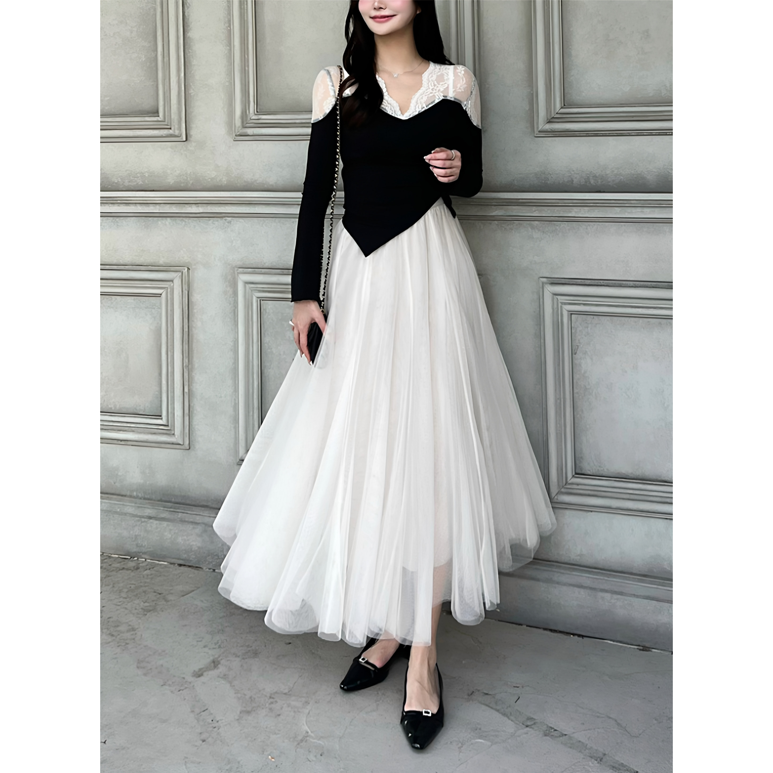 📚 现* 花糖家 日系定制GRL百搭斋藤飞鸟双层纱高腰松紧半身裙at118
