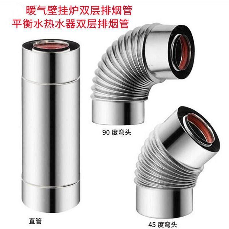 📚 适用林内壁挂采暖炉平衡式热水器双层不锈钢排烟管45度弯头12080