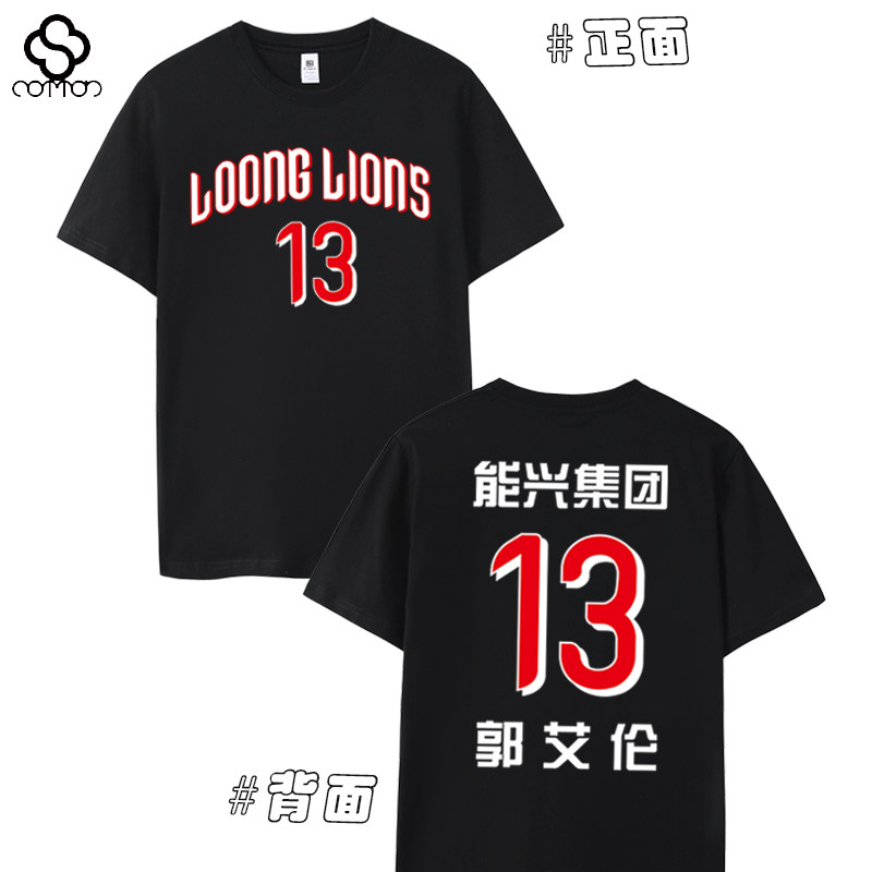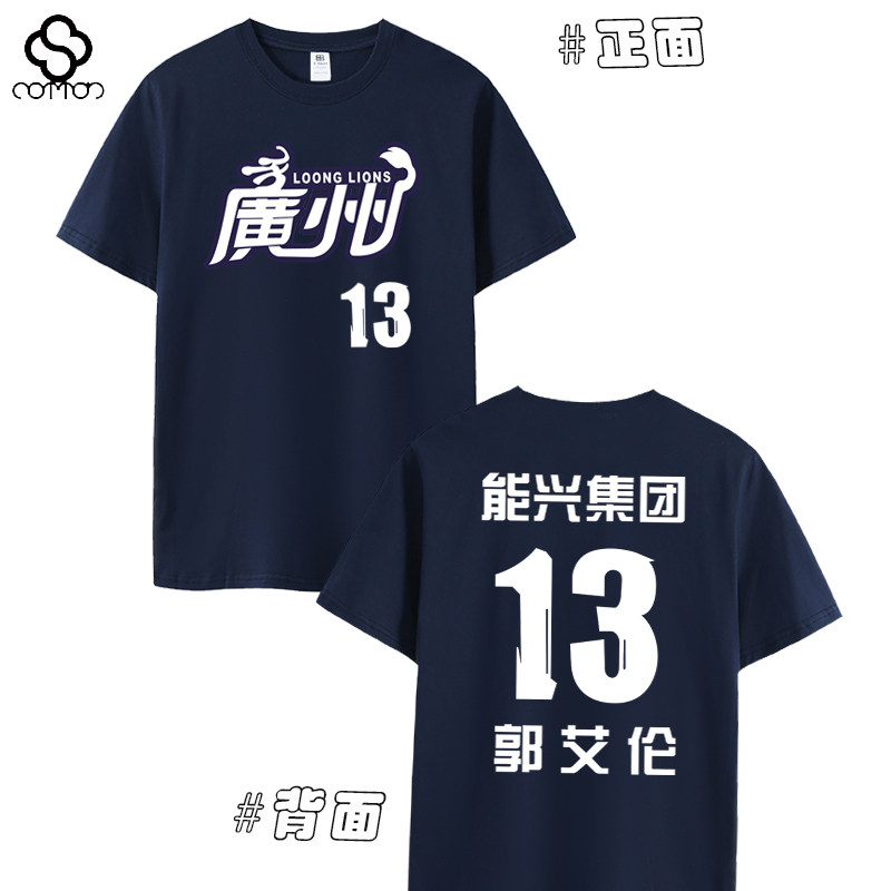 📚 广州龙狮队郭艾伦球衣短袖T恤中文城市版训练服投篮球大码男运动