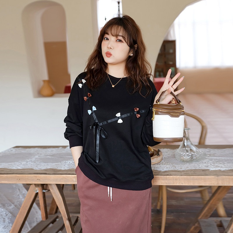 💥种草!蓝若水大码女装春装新款减龄蝴蝶结加绒保暖卫衣,让你秒变甜美女神💖
