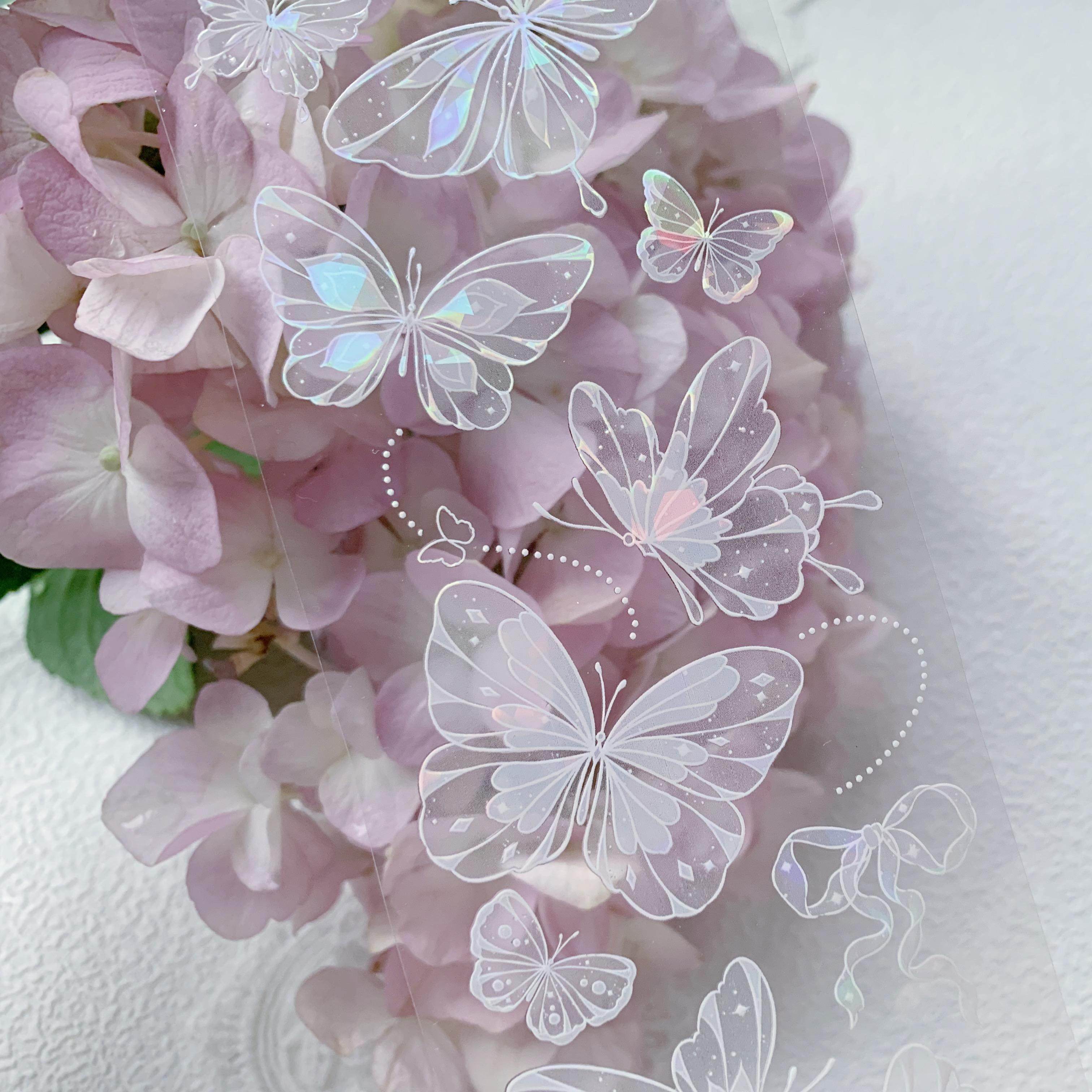 📚 【迷雾森林】白雪 蝶影贝壳光PET胶带分装 手帐咕卡胶带新品贴纸