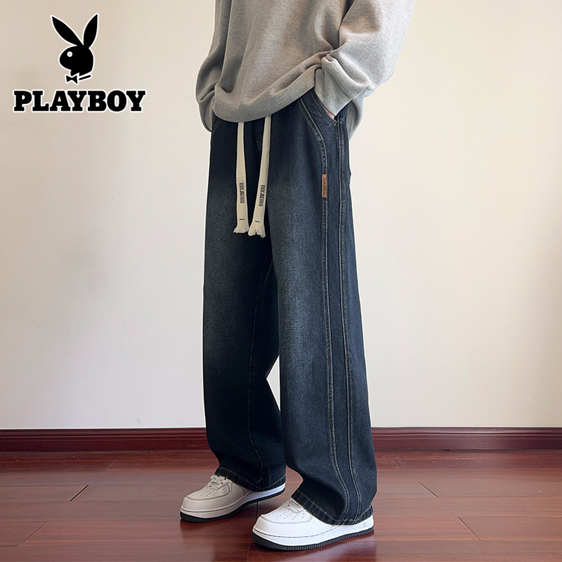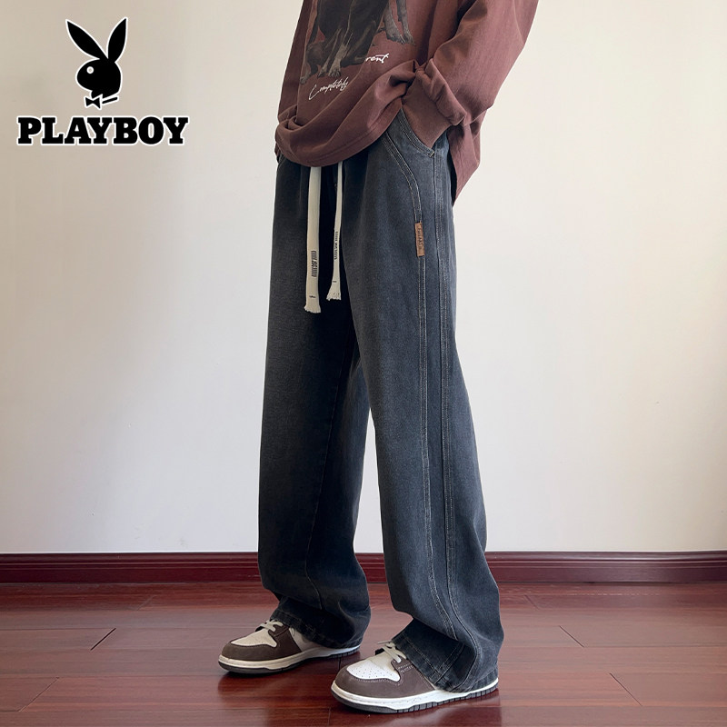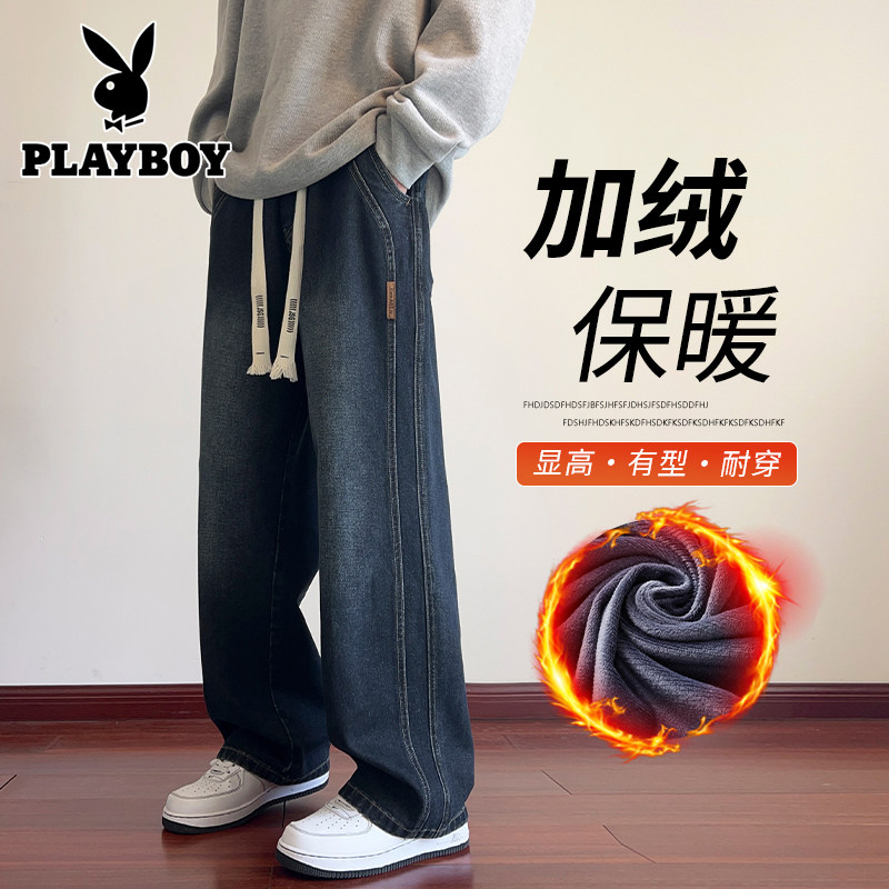 📚 花花公子秋冬季新款加绒牛仔裤男款宽松直筒休闲长裤美式高街裤子