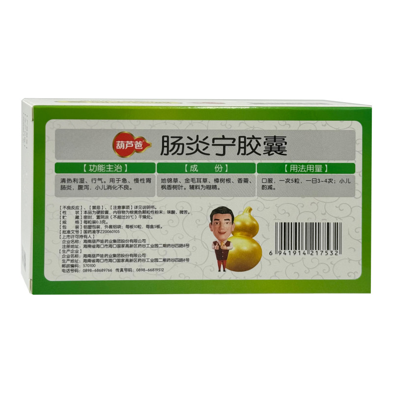 📚 葫芦爸娃肠炎宁胶囊50粒清热急慢性胃肠炎腹泻正品官方旗舰店