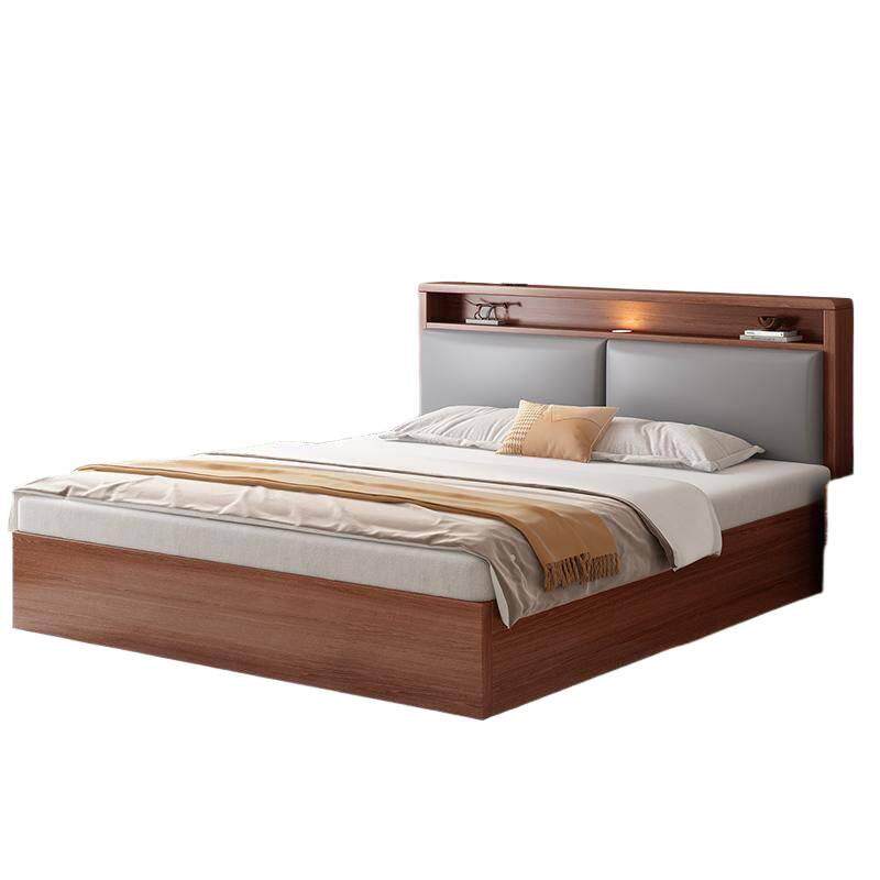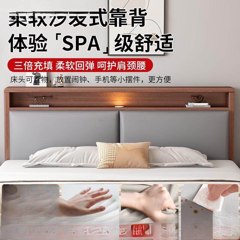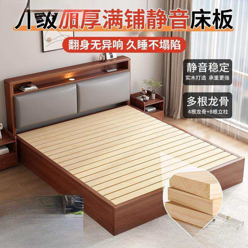 📚 实木床1米8双人床家用主卧软包1.5米新款出租房储物单人床排骨架