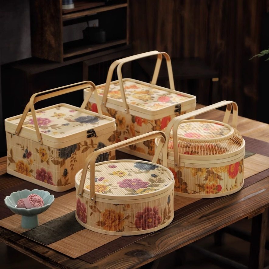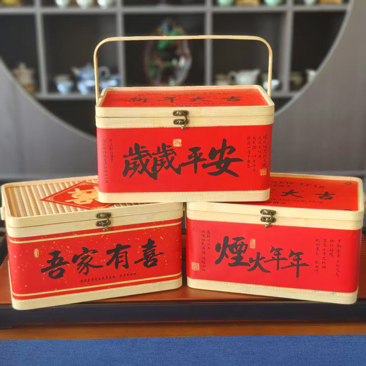 📚 复古风国潮礼盒装年货特产水果竹篮子活动包装喜事春节手提篮批发