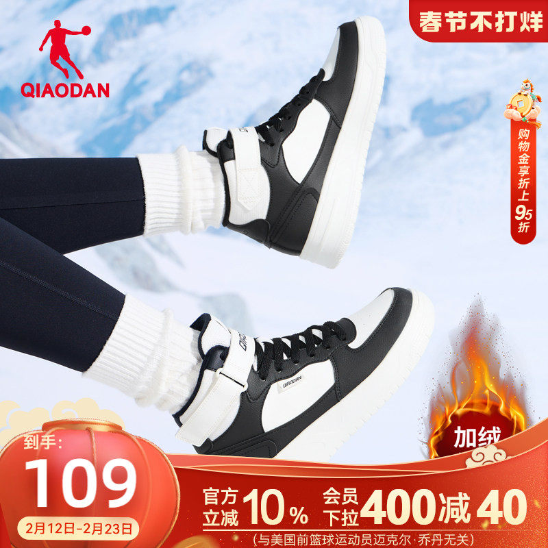 📚 乔丹2025年冬季新品棉鞋女款运动板鞋加绒保暖黑白百搭休闲鞋女子