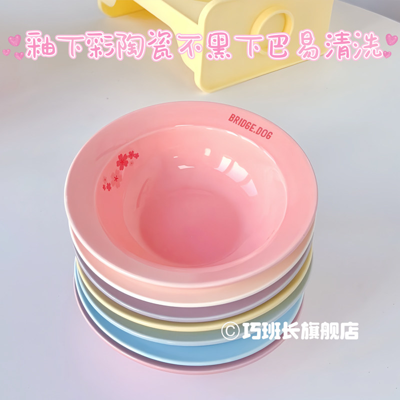 📚 陶瓷猫碗大口径防黑下巴方块猫碗架增高餐桌小狗碗宠物粮碗水碗