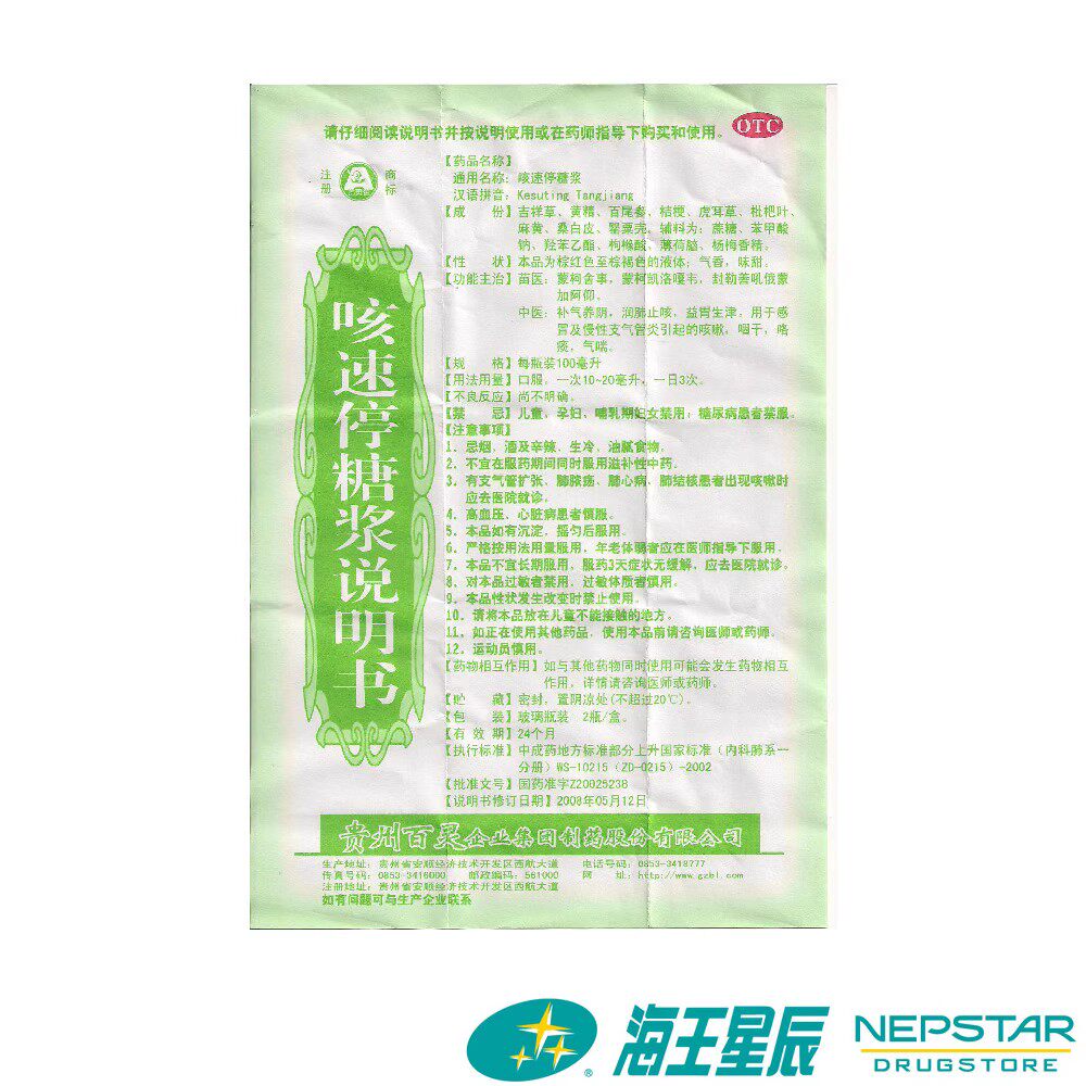 📚 贵州百灵咳速停糖浆100ml生津养阴咽干咳痰慢性支气管炎咳嗽气喘