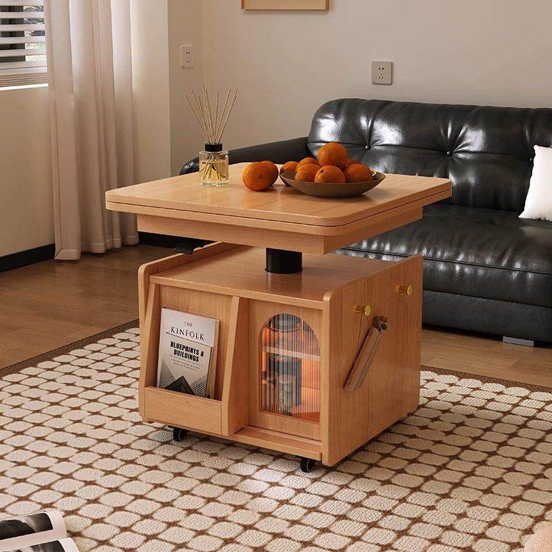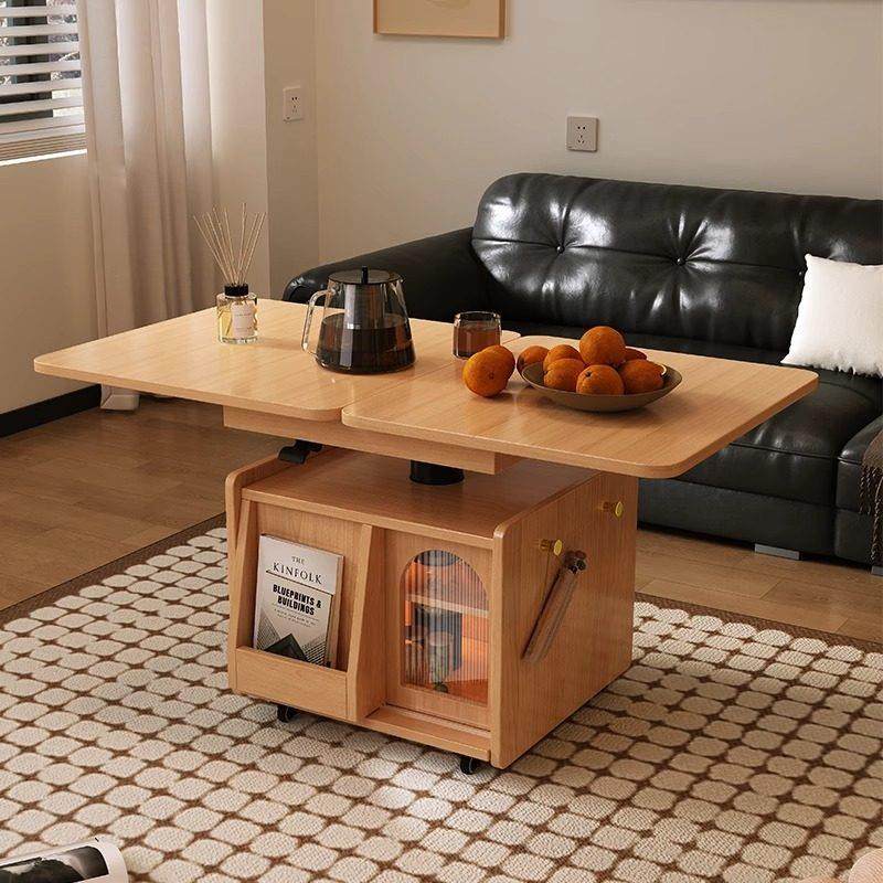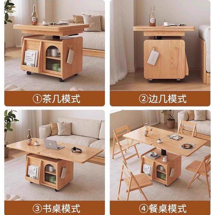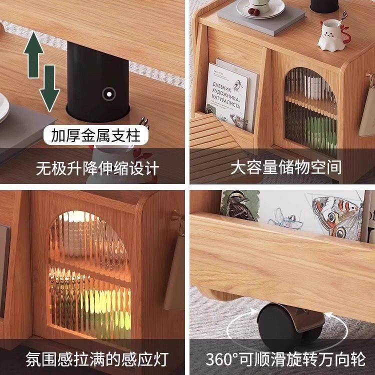 📚 实木升降折叠茶几餐桌两用移动推车茶桌家用小户型多功能沙发边几