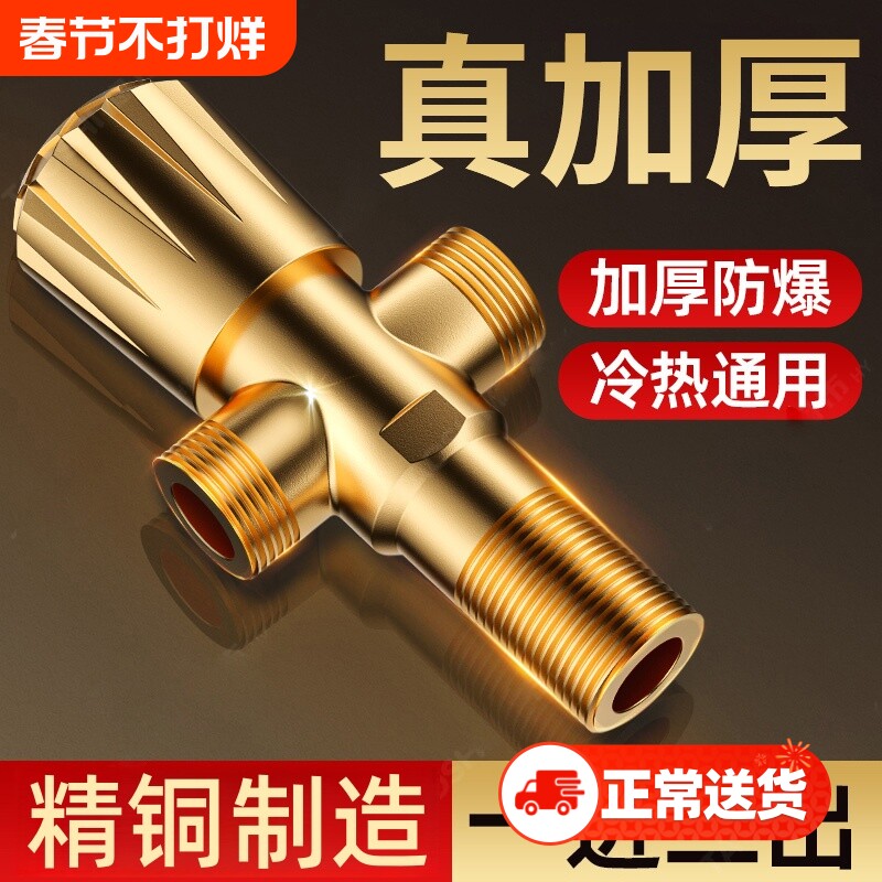 📚 全铜一进二出角阀加厚三角阀通用马桶热水器4分水阀门卫浴