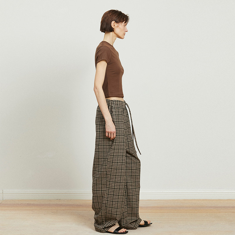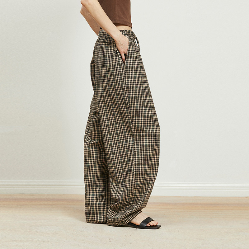 📚 Carolingian松弛时髦!VISCOSE+羊毛复古色织格纹宽松阔腿裤秋冬