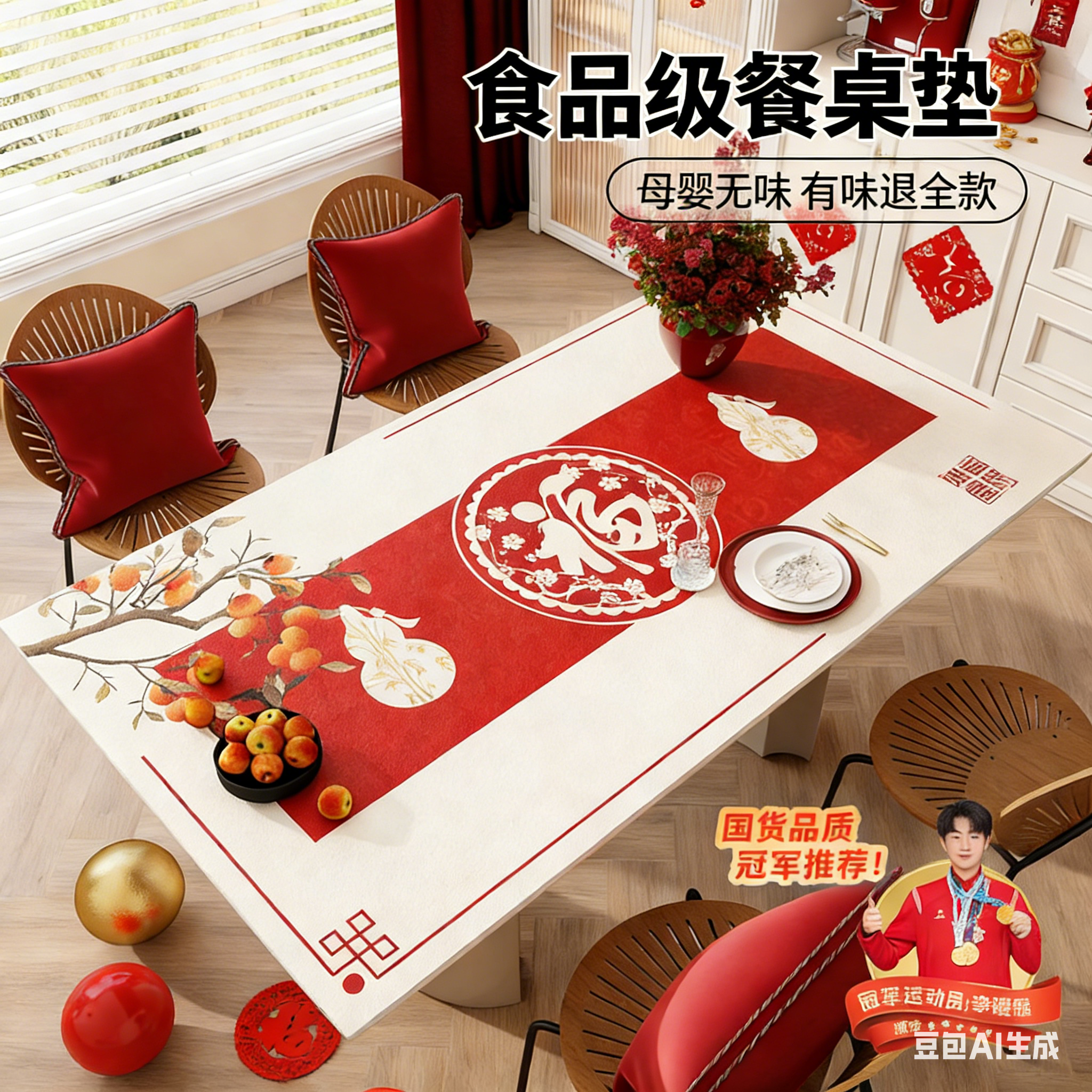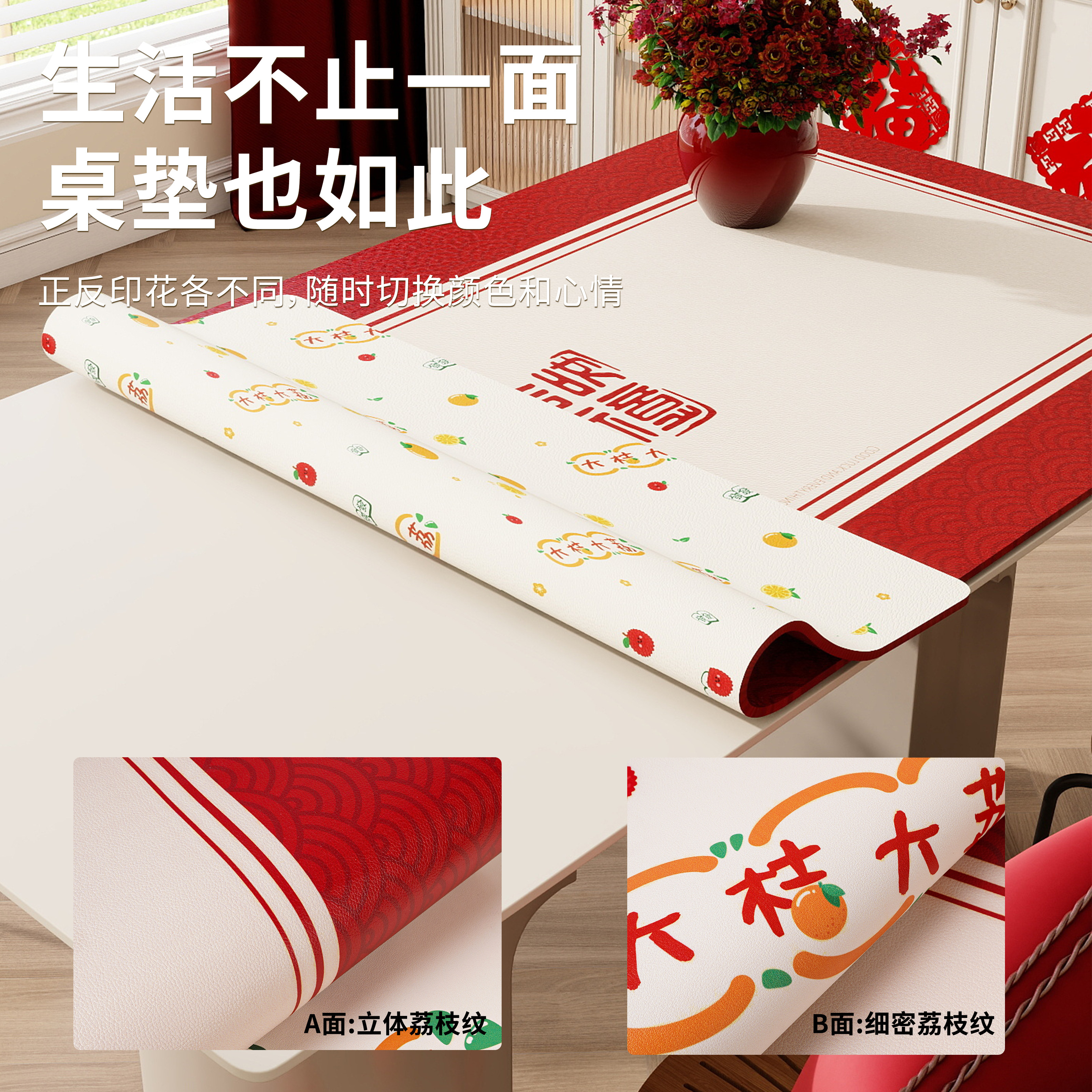 📚 2026新年双面红色皮革餐桌垫防水防污免洗防烫高级感喜庆茶几垫子