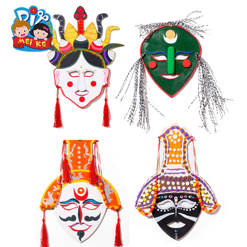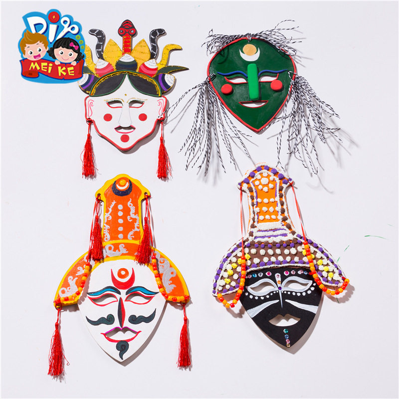 📚 中国风藏戏面具儿童涂色面具脸谱画幼儿园儿童diy手工自制材料包