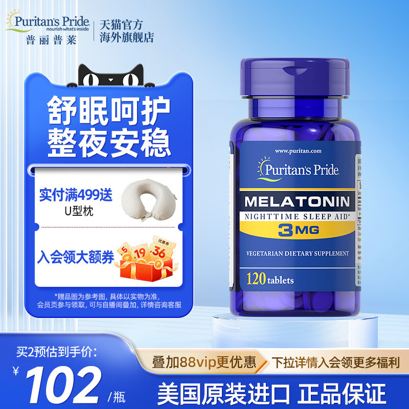 📚 普丽普莱褪黑素3mg120片轻度失眠睡眠片美国进口闪睡片助眠退黑素