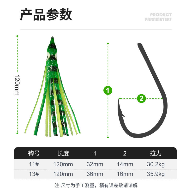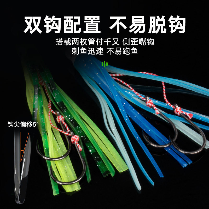 📚 船钓炎月双钩鳕鱼夜光铁板铅鱼章鱼鱿鱼钩假饵乌贼饵仿生软饵