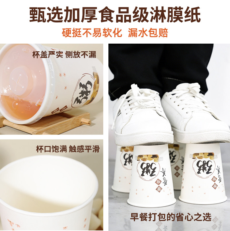 📚 粥杯子一次性商用带盖吸管食品级豆浆杯早餐店专用外带粥稀饭纸杯