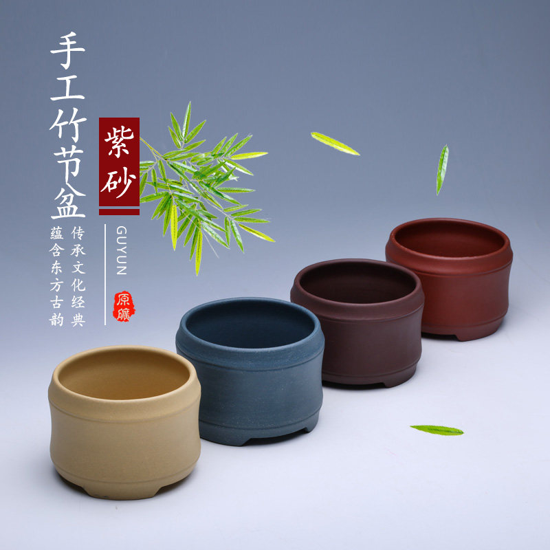 📚 宜兴紫砂透气古典风竹筒型菖蒲多肉手工中小款光面圆口老桩盆zh83