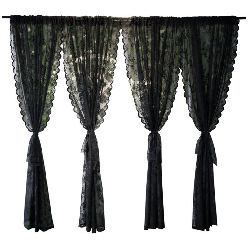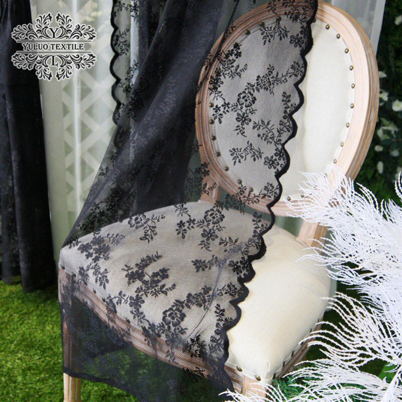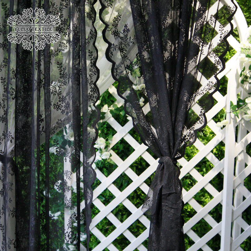 📚 黑色花边蕾丝窗帘纱帘成品法式田园北欧复古美式窗纱黑纱布料