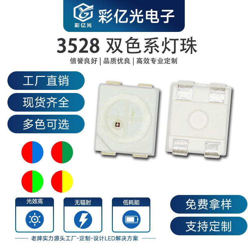 📚 直销3528LED灯珠红翠绿红蓝红普绿同极反极双色1210贴片