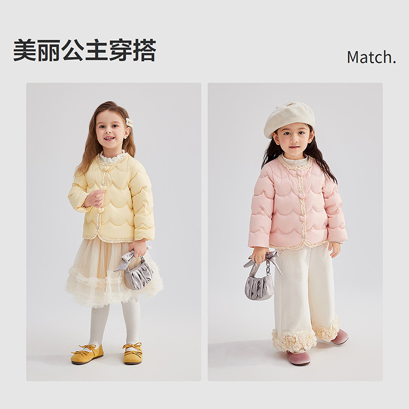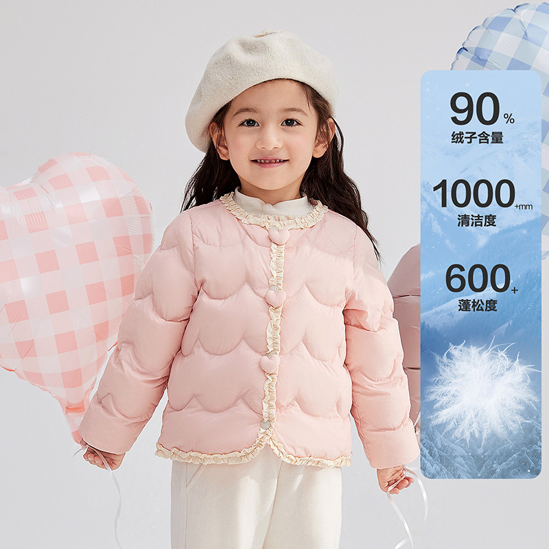 这款羽绒服的设计超级精致,颜色是清新的粉色系,让人看了就忍不住想要入手。它的短款设计非常适合小仙女们的小个子,穿起来既显高又显瘦。而且,轻薄的内胆设计让宝宝穿着更加舒适,保暖效果超赞!