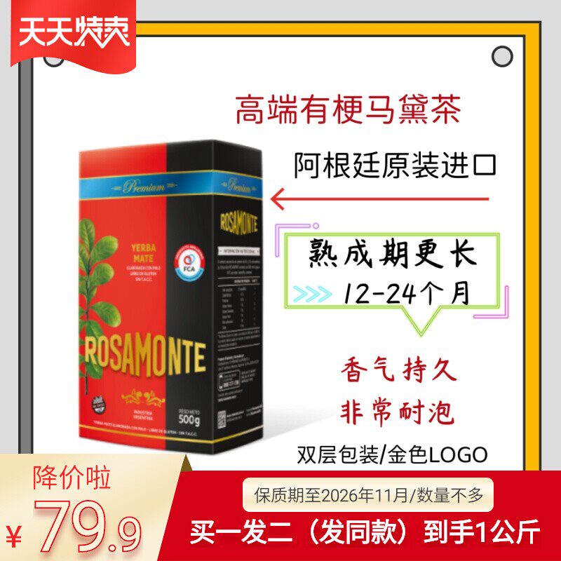 📚 拍1发2/保质期至2026年11月优选有梗阿根廷进口原装马黛500克耐泡